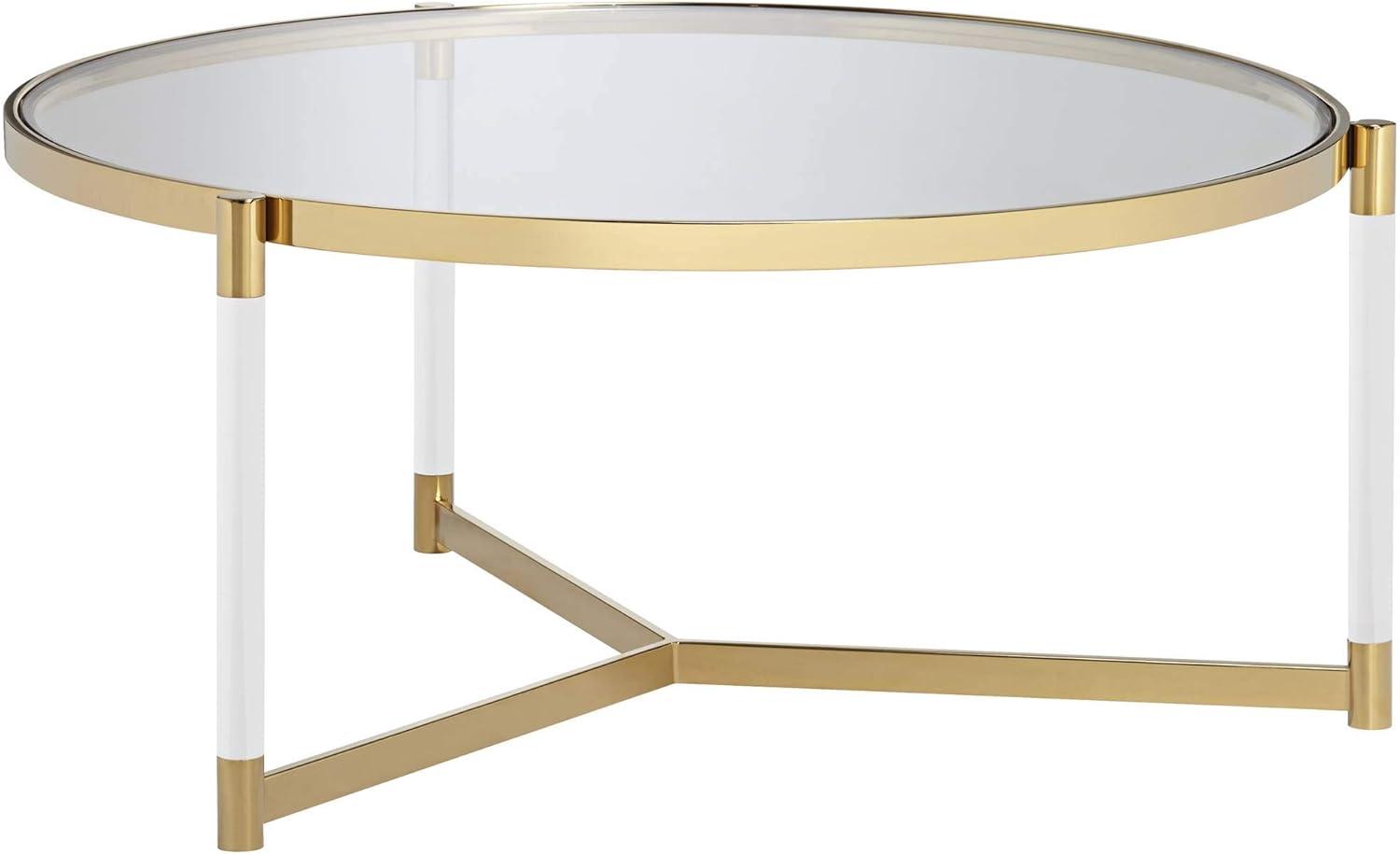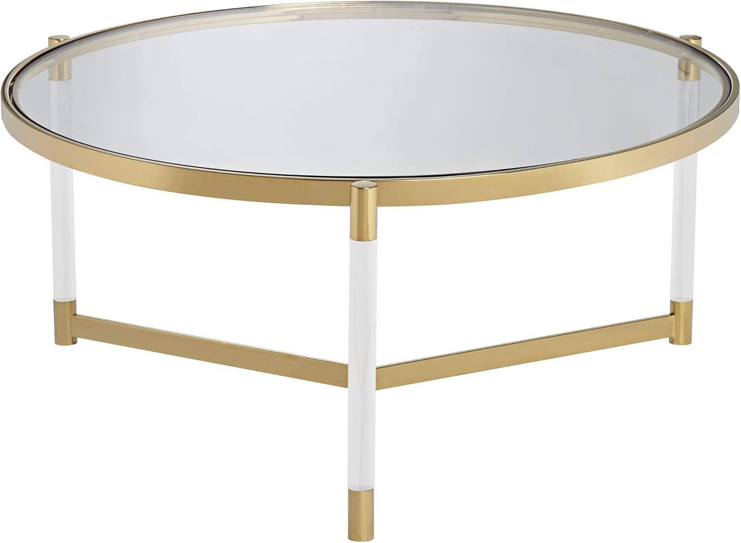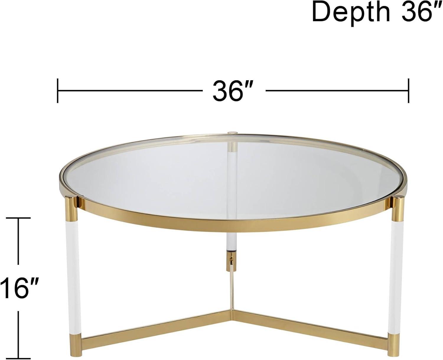 The 55 Downing Street Stefania modern Glam acrylic Round Coffee Table finds its place not all at once but over time, as light shifts and the small things you set down begin to belong to it. In daily routines it becomes where your coffee and keys land, where knees and feet arrange themselves around it, and where a stack of magazines gathers a habitual crease. Surface wear—smudges on the glass, faint scuffs on the gold—appears in the ordinary way of things and starts to read like familiar handwriting in the room’s circulation. As the room is used and used again, you stop noticing it as a newcomer; it becomes part of the room and stays.