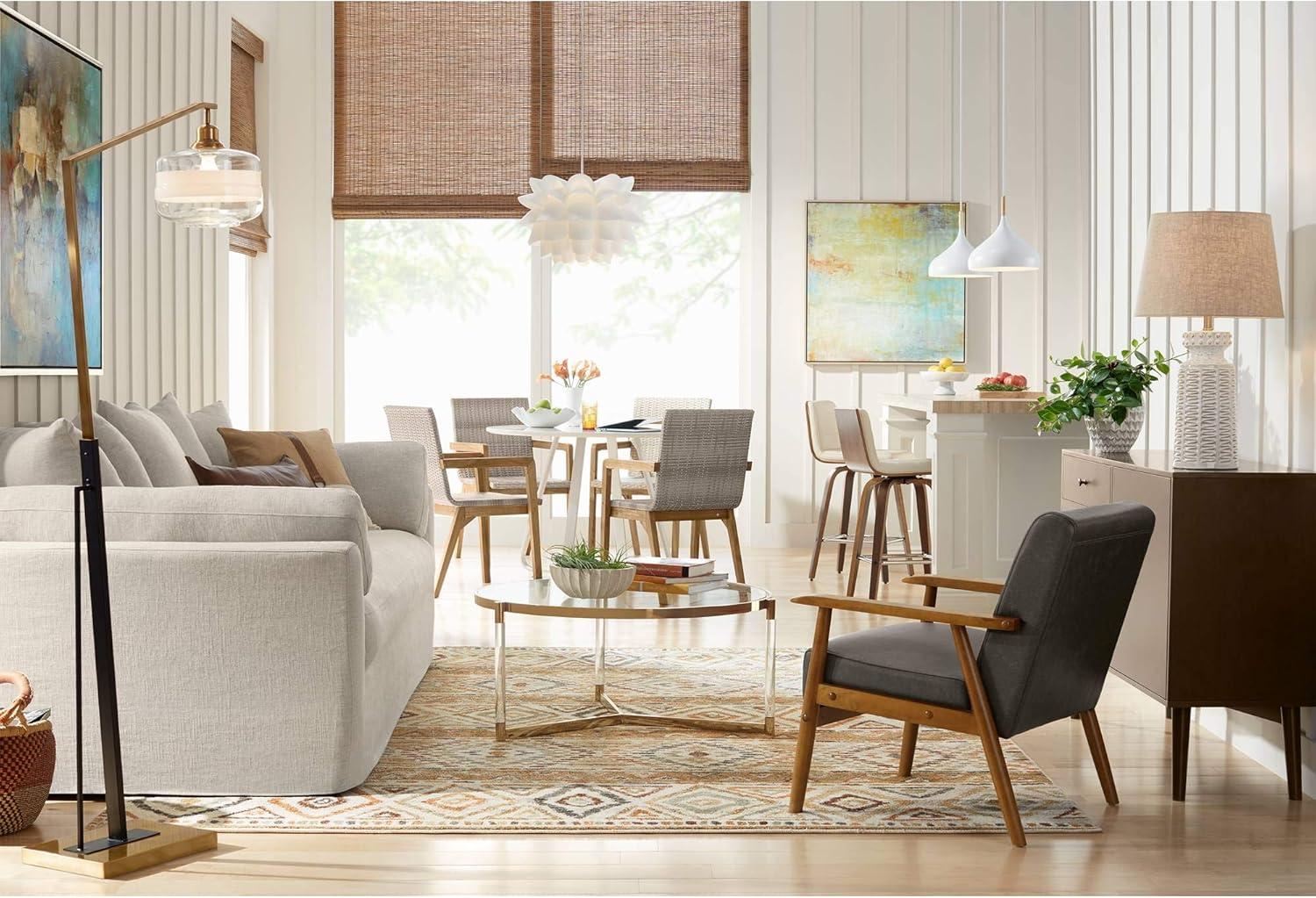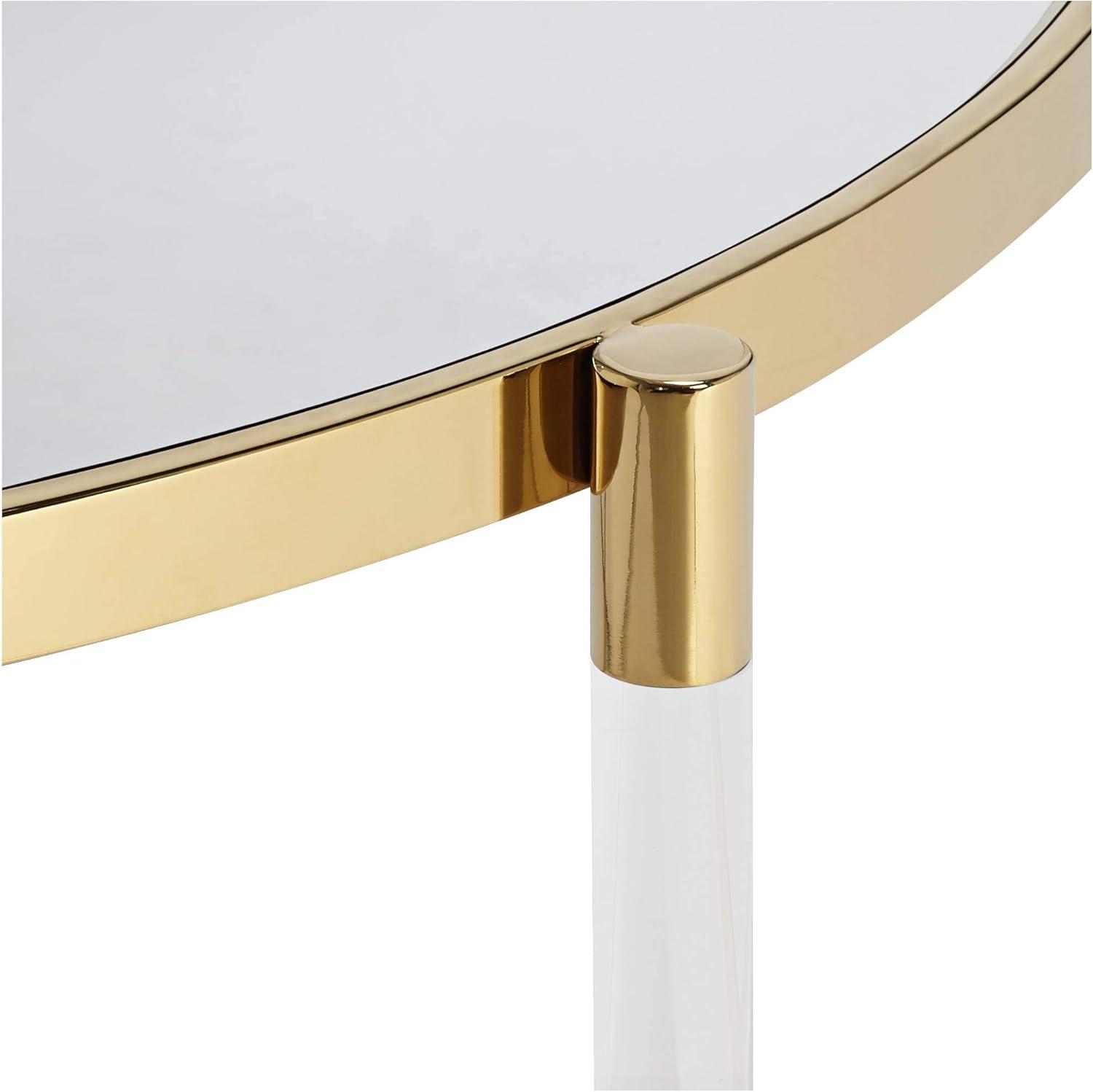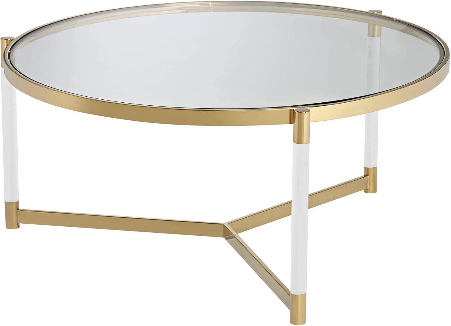 The 55 Downing Street Stefania modern Glam acrylic Round Coffee Table finds its place not all at once but over time, as light shifts and the small things you set down begin to belong to it. In daily routines it becomes where your coffee and keys land, where knees and feet arrange themselves around it, and where a stack of magazines gathers a habitual crease. Surface wear—smudges on the glass, faint scuffs on the gold—appears in the ordinary way of things and starts to read like familiar handwriting in the room’s circulation. As the room is used and used again, you stop noticing it as a newcomer; it becomes part of the room and stays.