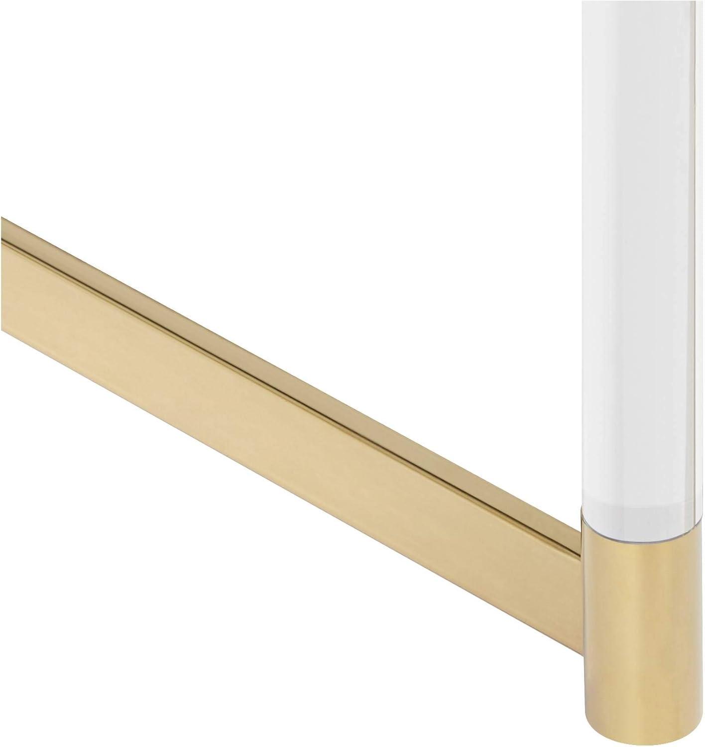 Touching the metalwork, the gold finish feels cool and mostly even, with a subtle texture that becomes apparent when you run your fingertips along the frame. Around screwheads and connection points there is often a tiny change in contour; you’ll find yourself subconsciously pressing or nudging those spots while positioning the table. The painted or plated surface resists rough abrasion in everyday contact but shows the occasional fine mark from rings or keys, and the transition between metal and acrylic can feel like a purposeful ridge where the two materials meet.