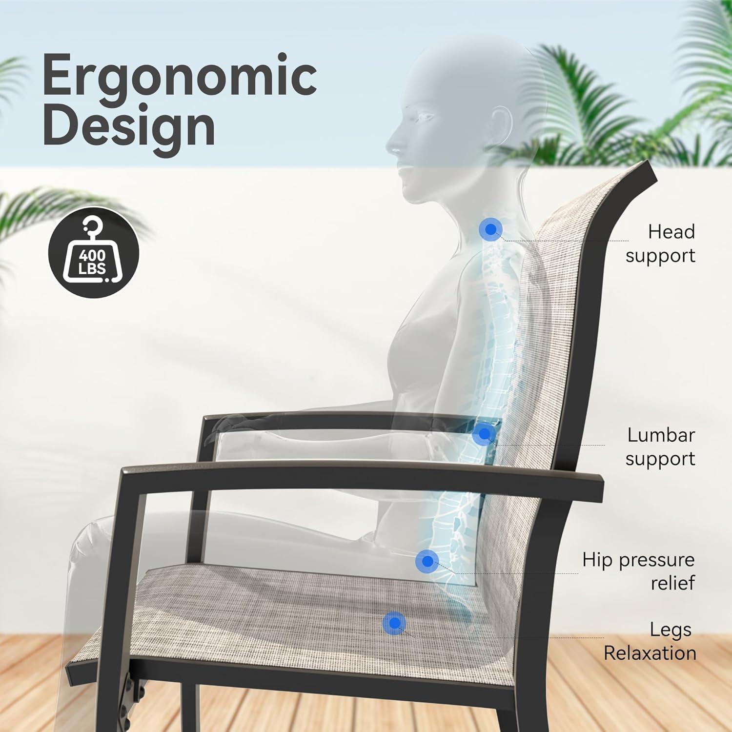 When you move the set into place, you notice how the pieces behave with everyday motion: the table feels planted once the hardware is tightened, and nudging it across a flat deck is straightforward if a quick pivot is needed. Pull a chair out and the seat gives a little underweight shifts; it slides cleanly over smooth surfaces and can scrape lightly on rough concrete. In normal use you end up arranging the grouping close to the flow of traffic — a pass-through for plates, a spot beside the grill — and the frames respond predictably to those small adjustments.
