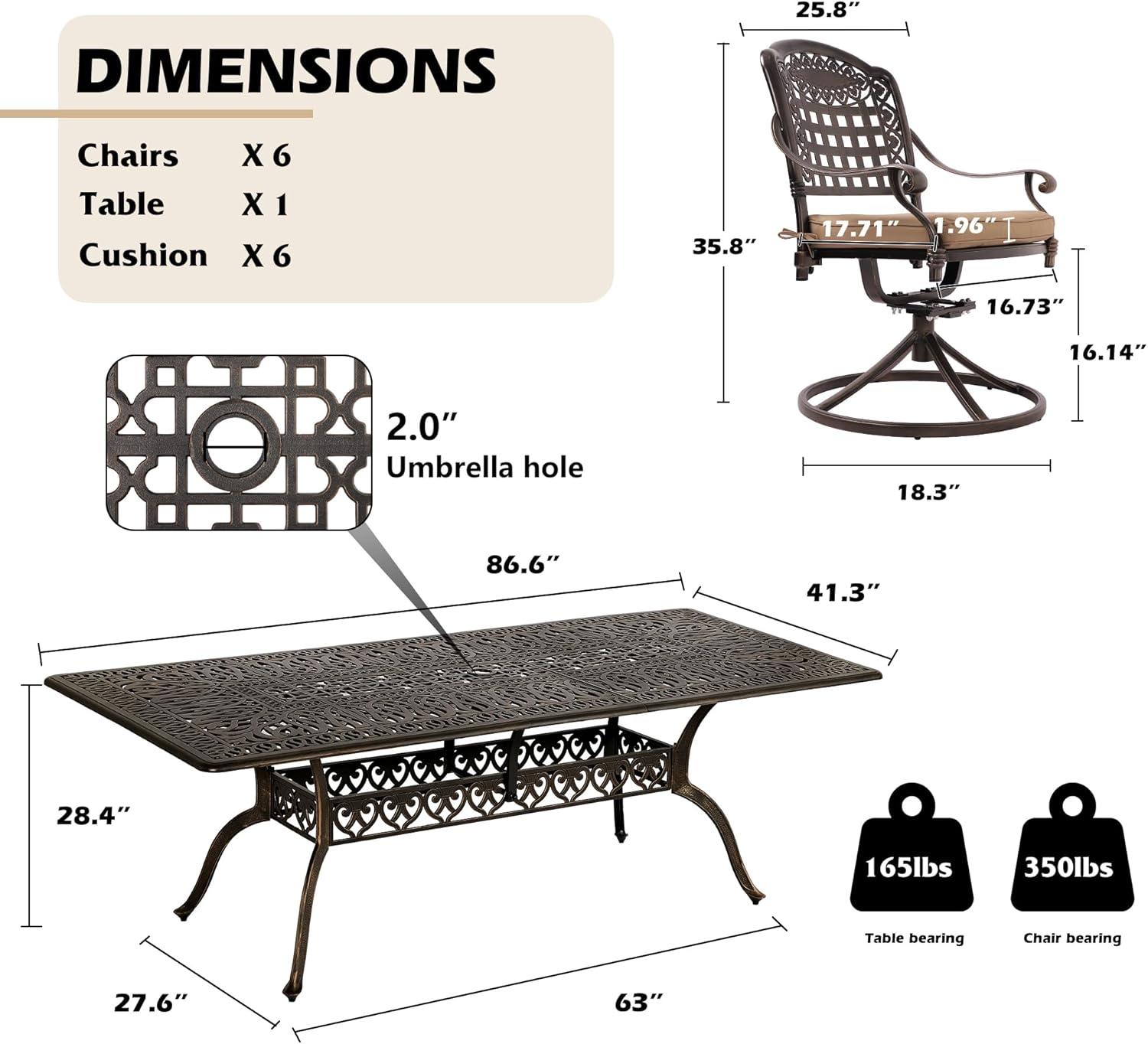 In the weeks and⁤ months after it arrives,‍ your 9 Pieces outdoor Dining‍ set, Cast Aluminum Retro​ Patio Dining Set with the‌ 87-inch ​rectangular ⁢table slips into the pattern of daily routines,‌ chairs ⁣nudging into the ⁢same spots and the umbrella hole ⁣becoming a quiet fixture in the center. You notice the khaki cushions⁣ soften in the places people favor ⁢and the swivel chairs adopt the small motions that come from repeated use, while the table surface takes on the faint, ordinary marks that mean⁢ it’s been lived with.‍ As the space‌ is used for quick breakfasts, lingering dinners, and everything in between, the set’s presence⁣ grows more about holding those moments than about​ how⁣ new⁢ it once was.Over ⁢time it​ stays,‍ part ​of ‍your everyday rhythms.
