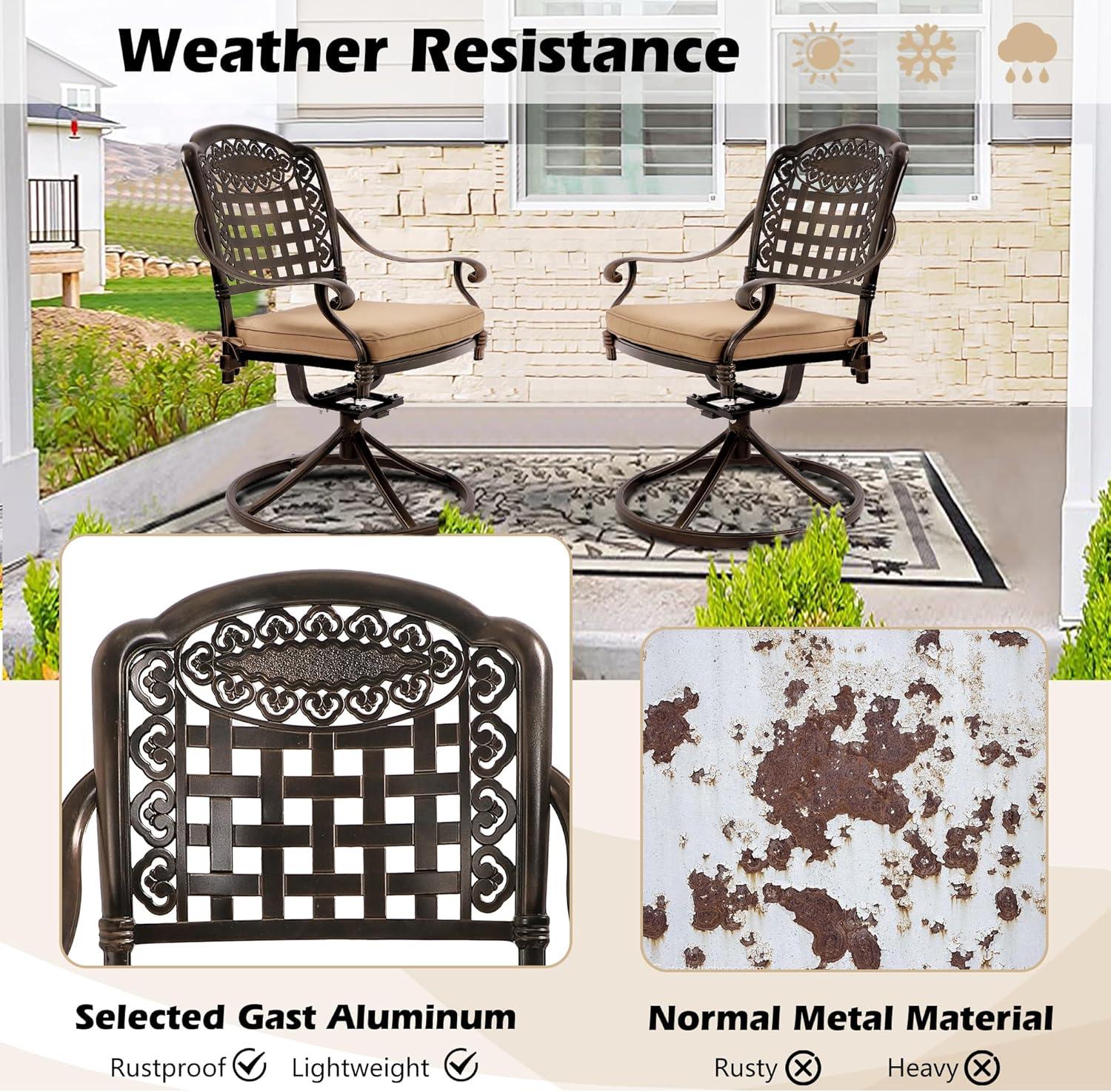 On a day-to-day level you’ll ⁣notice small rituals form around the ‌set: you ⁣smooth the khaki cushions when guests arrive, tug at​ a seam that’s shifted after someone stands,‌ and​ push chairs ‌back under the​ table until the‌ swivel settles.⁢ After meals a dry cloth⁣ is what you reach for most ⁢often —⁣ it lifts ‍crumbs and light dust from the cast-aluminum slats and from the crevices where the finish traps grit. ‍If rain has sat ⁢on the table ⁢or pooled in the umbrella hole, a fast blot ⁢and a moment to prop cushions upright to ‍air out⁤ will be​ the kind of⁣ little corrections that repeat through⁤ the warmer months.