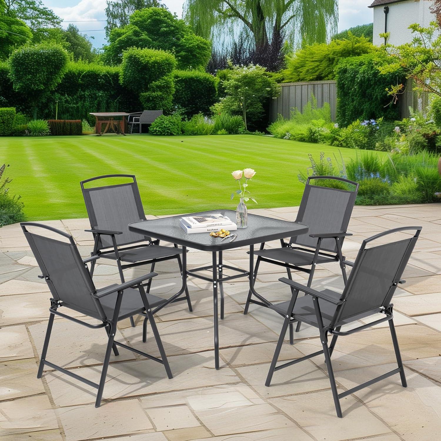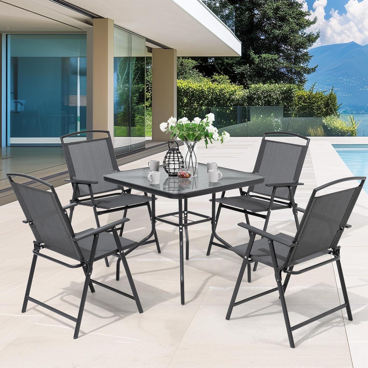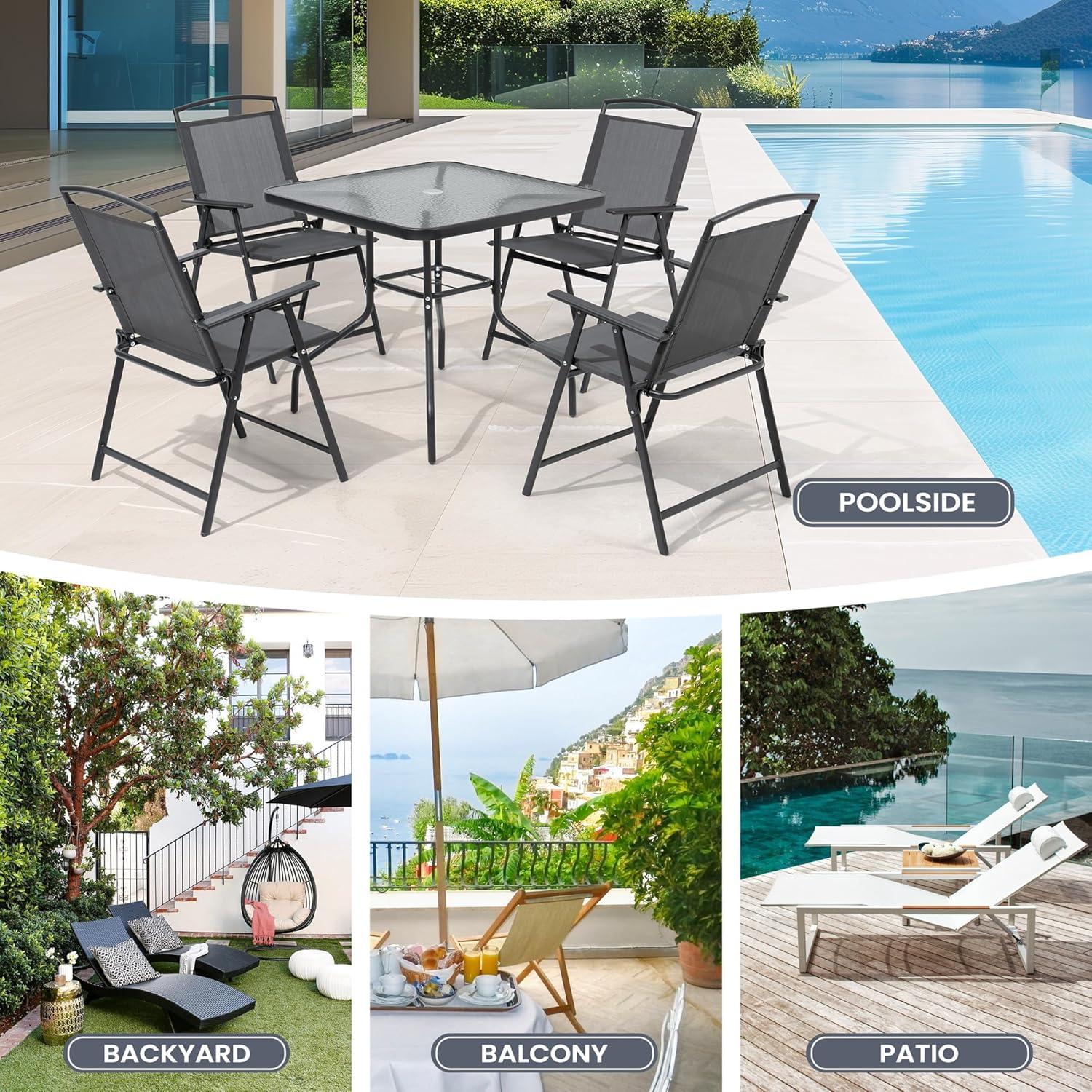 the Pellebant 5 Pieces Outdoor Table and Chairs set truly delivers on its promise of combining comfort, durability, and smart space-saving design. Whether you have a cozy balcony or a spacious backyard, this patio dining set adapts effortlessly to your needs, making outdoor dining and relaxing a breeze. The foldable chairs, breathable fabric, and sturdy tempered glass table bring both convenience and style to your outdoor moments. We appreciate how easy it is indeed to assemble and store, so it’s perfect for those who value both function and form. If you’re looking for an outdoor set that balances practicality with comfort,this one is definitely worth considering.