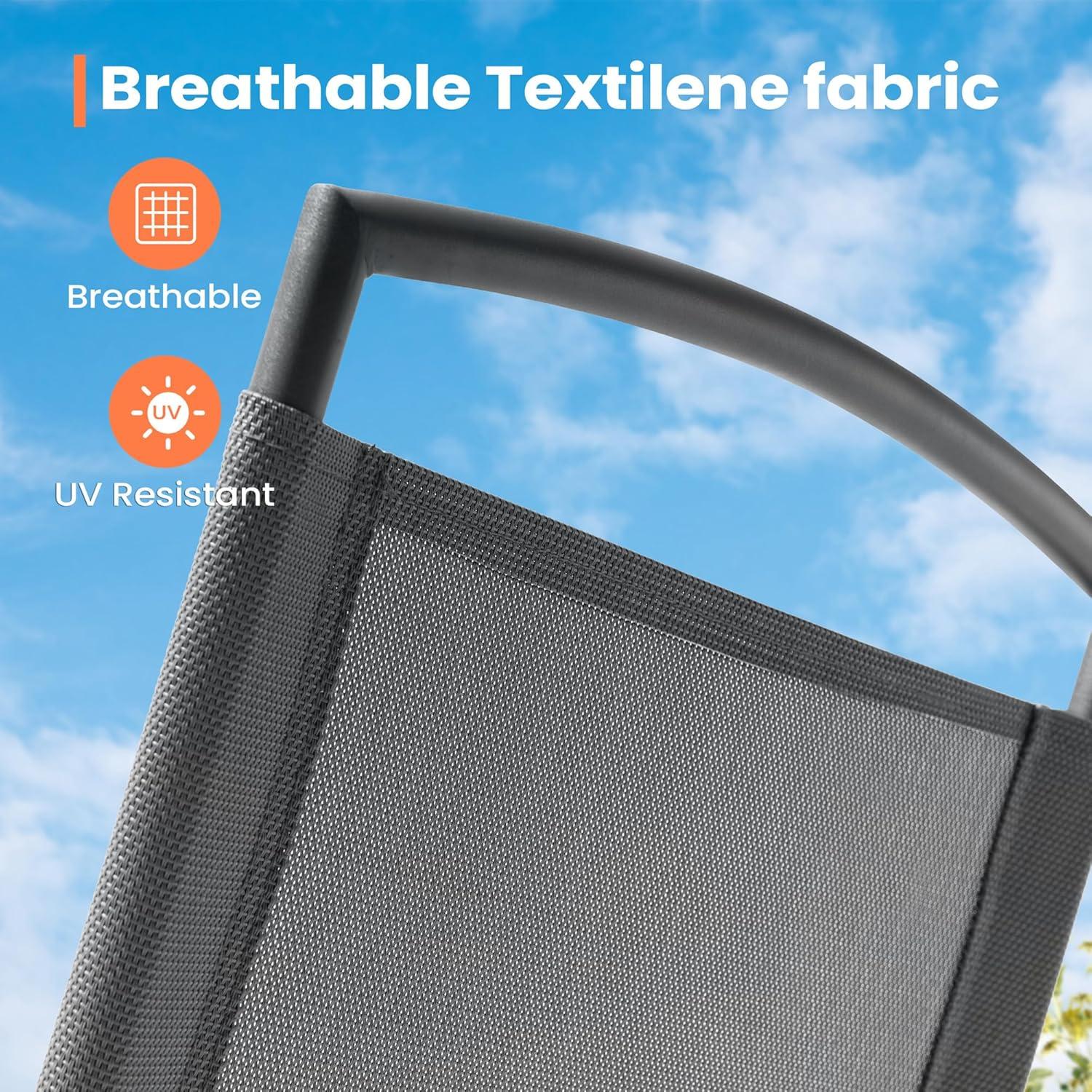 | Textilene Fabric | Breathable and elastic for comfort |