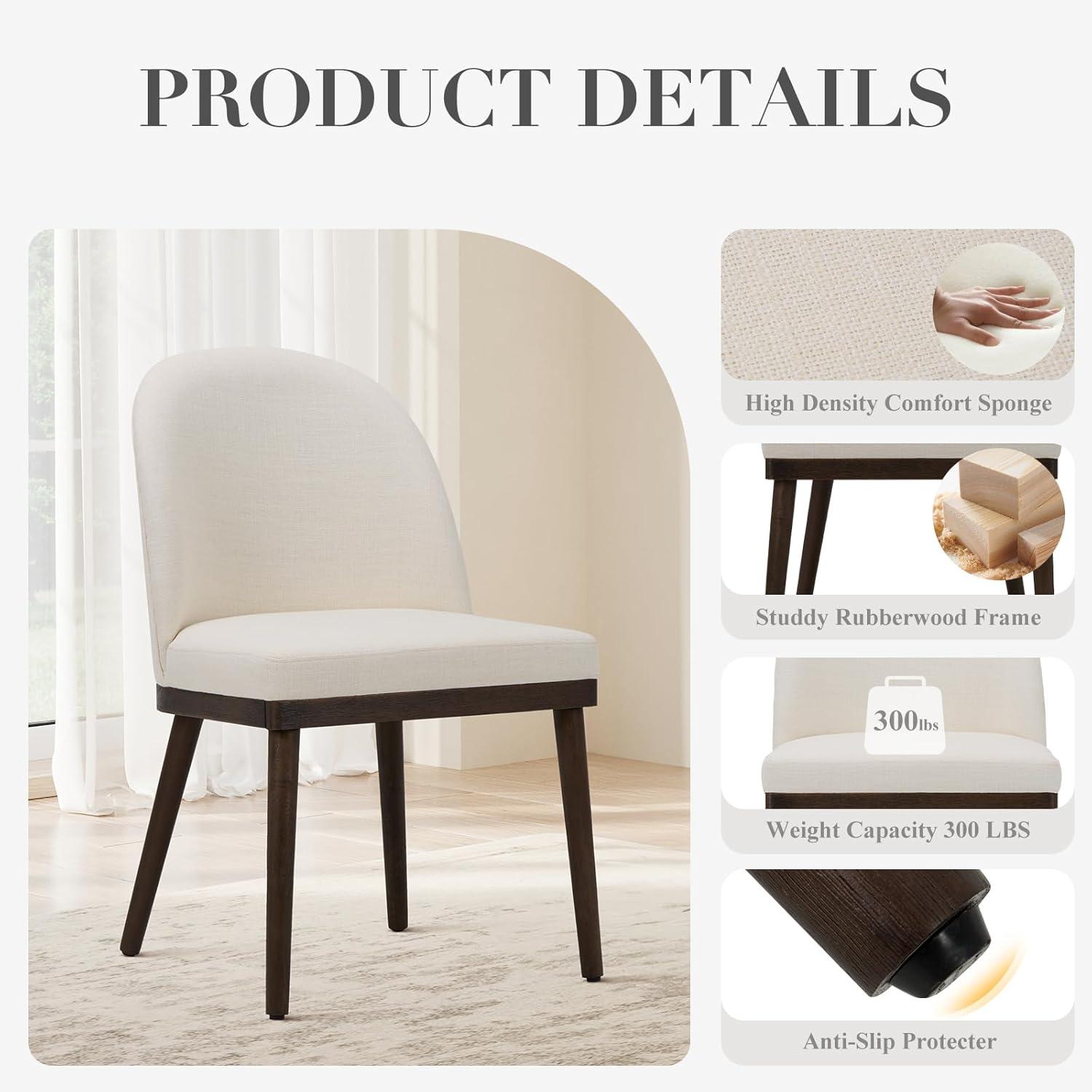 | Elegant Modern Design: The beige upholstery paired with natural wood legs brings a clean, warm aesthetic that fits effortlessly into a variety of décor styles. | Weight Capacity Limit: Each chair supports up to 300 lbs, which covers most users but might potentially be a limitation for heavier individuals. |