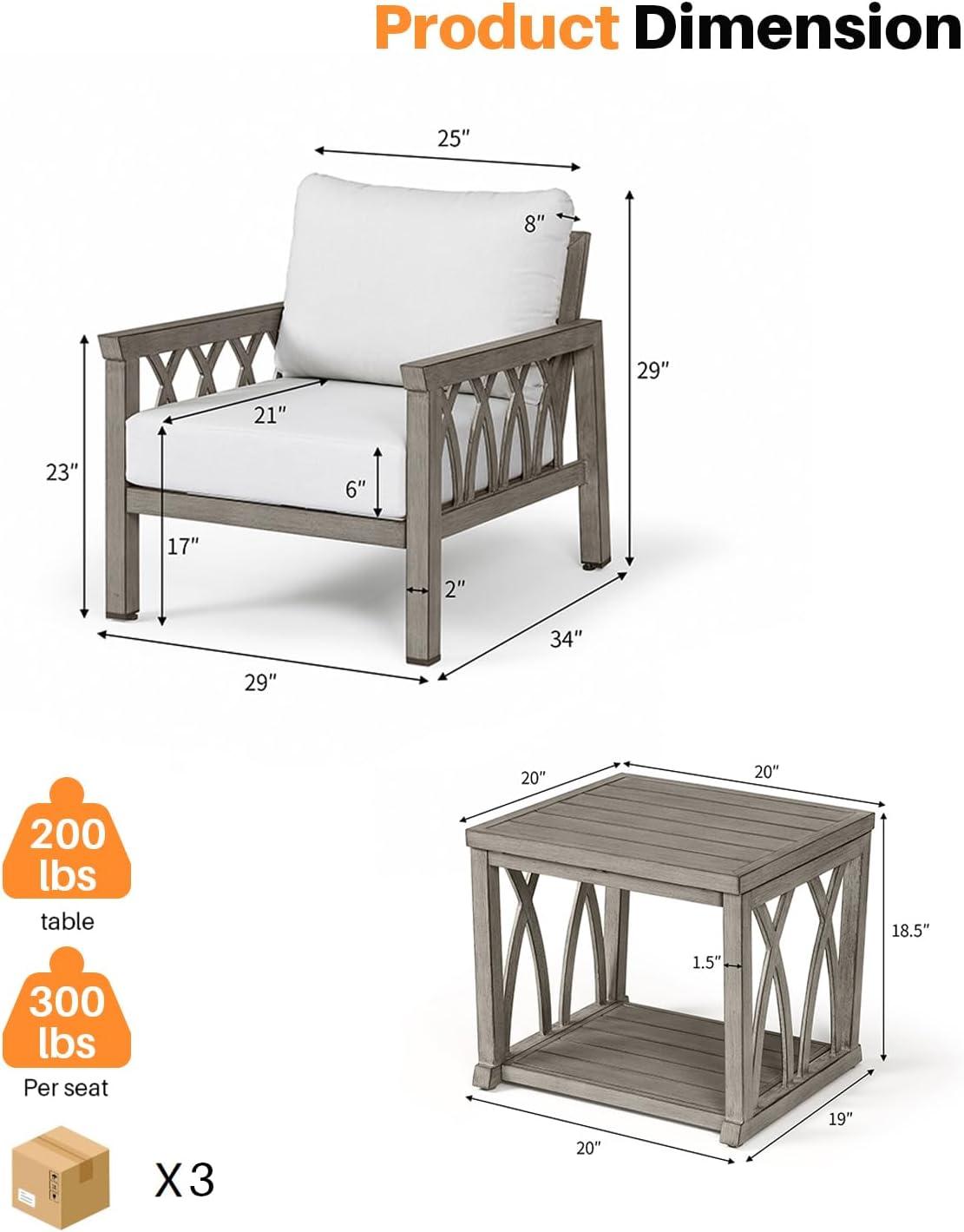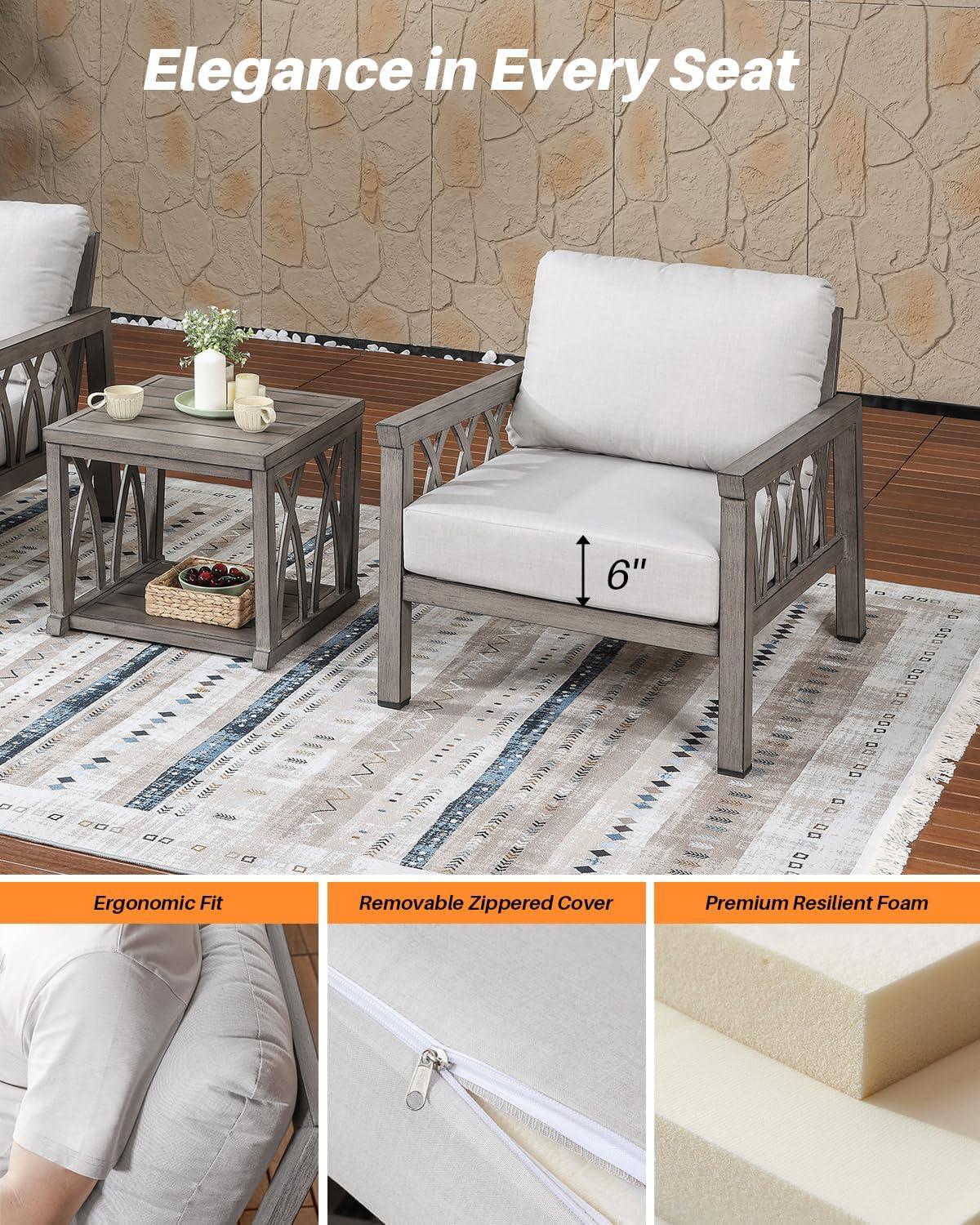 the combination of rustproof materials,breathable,washable cushion covers,and a thoughtful design means this set holds up beautifully across seasons with little upkeep. For anyone wanting outdoor furniture that thrives through sun, rain, and breeze, this set delivers reliable, all-weather comfort and style.