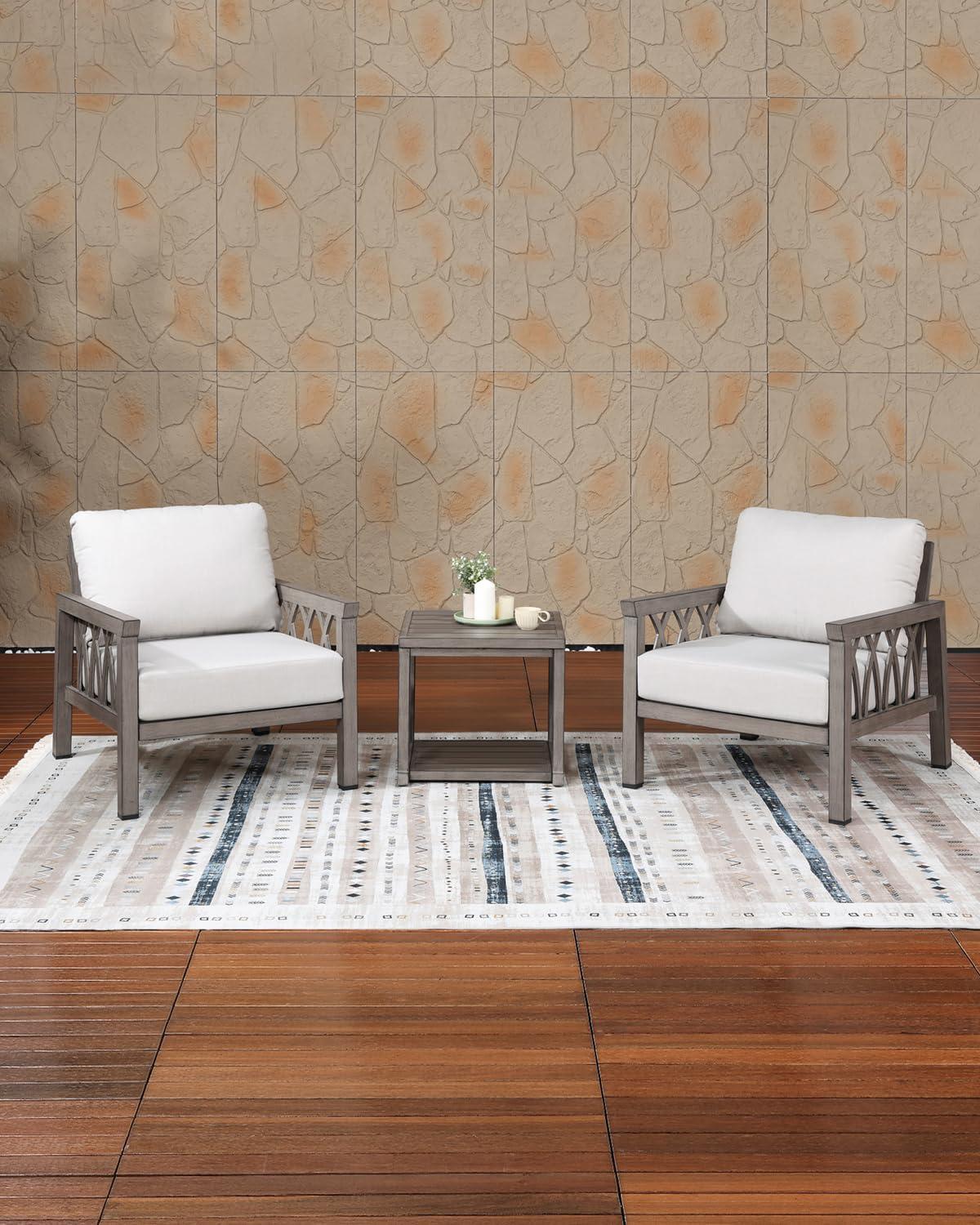 After spending considerable time with this outdoor trio, we appreciate how thoughtfully each element balances style and function. The lightweight aluminum frames with a limed oak finish not only resist rust and sun damage but also make rearranging the set effortless-ideal for those who like to refresh their outdoor space often. The geometric cutouts on the chairs add a modern flair while enhancing airflow, keeping us comfortable during long chats or relaxing afternoons. Plus, the thick, breathable cushions with zippered, washable covers make upkeep simple, ensuring the set stays inviting and fresh through all seasons.