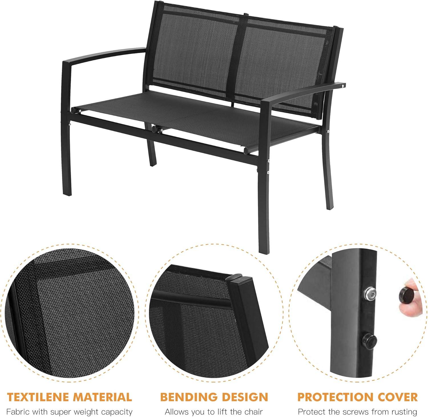 Bringing this furniture set into our outdoor spaces has transformed the atmosphere entirely. Its sleek, modern design blends effortlessly with different styles of home exteriors, enhancing the visual appeal of our porch and lawn. The black powder-coated steel frames paired with comfortable, breathable textilene fabric create a refined yet inviting space that invites relaxation and socializing alike. Whether we’re enjoying a quiet morning coffee or hosting evening gatherings, the loveseat and chairs provide comfortable seating that complements the surrounding greenery and architecture.