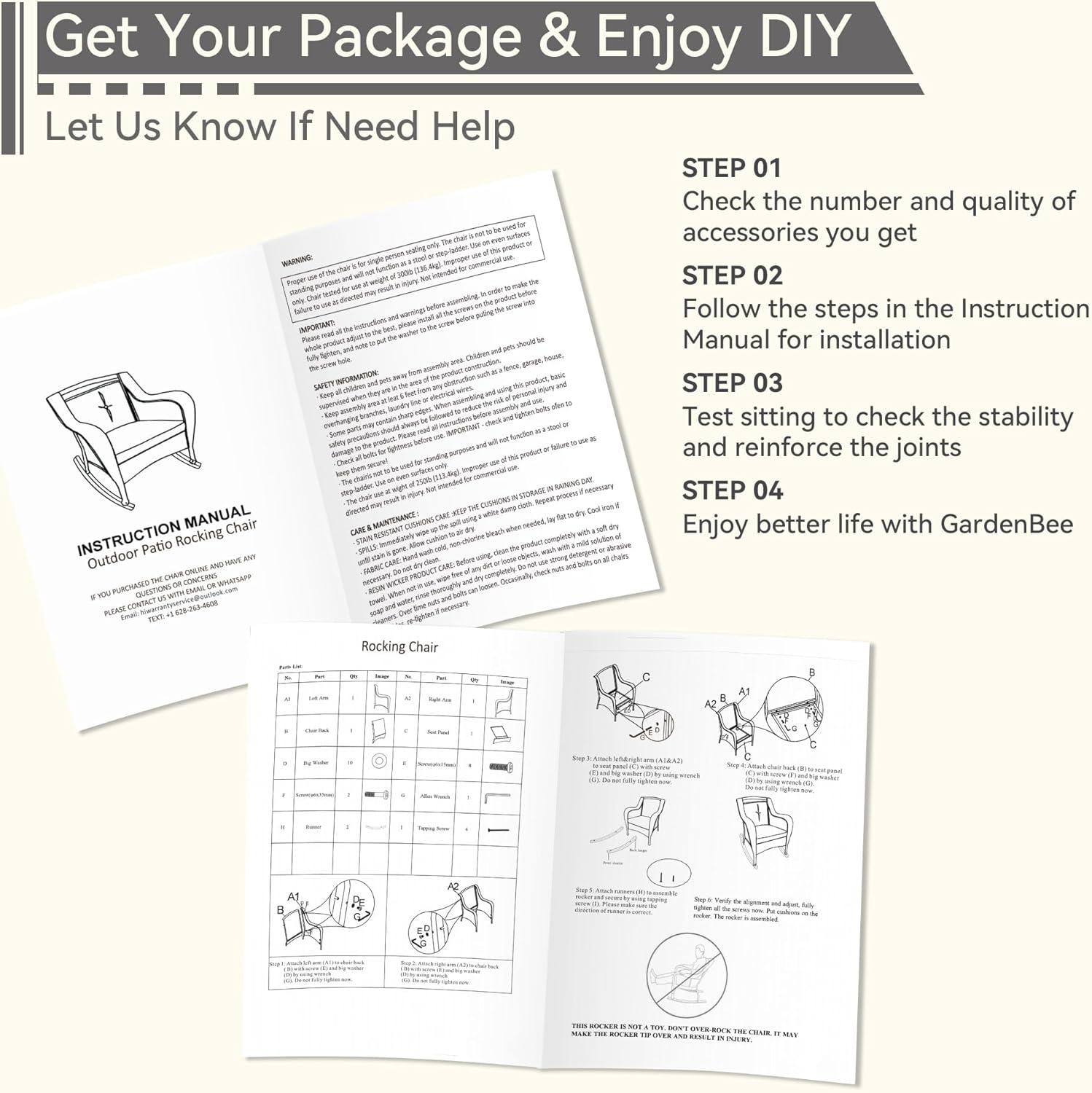 Putting together this rocking chair was surprisingly straightforward for us, especially with the clear instructions and all necessary hardware included in the package. While it’s recommended to have two people for smooth alignment of screws and parts, the process took under 30 minutes for one chair, making it accessible even for those not especially handy. The wicker panels cleverly conceal the screw holes,which adds to the aesthetic but requires a bit of patience when fastening. Despite this minor challenge, the sturdy steel frame fit together perfectly with minimal fuss, ensuring a stable and wobble-free structure right from the start.