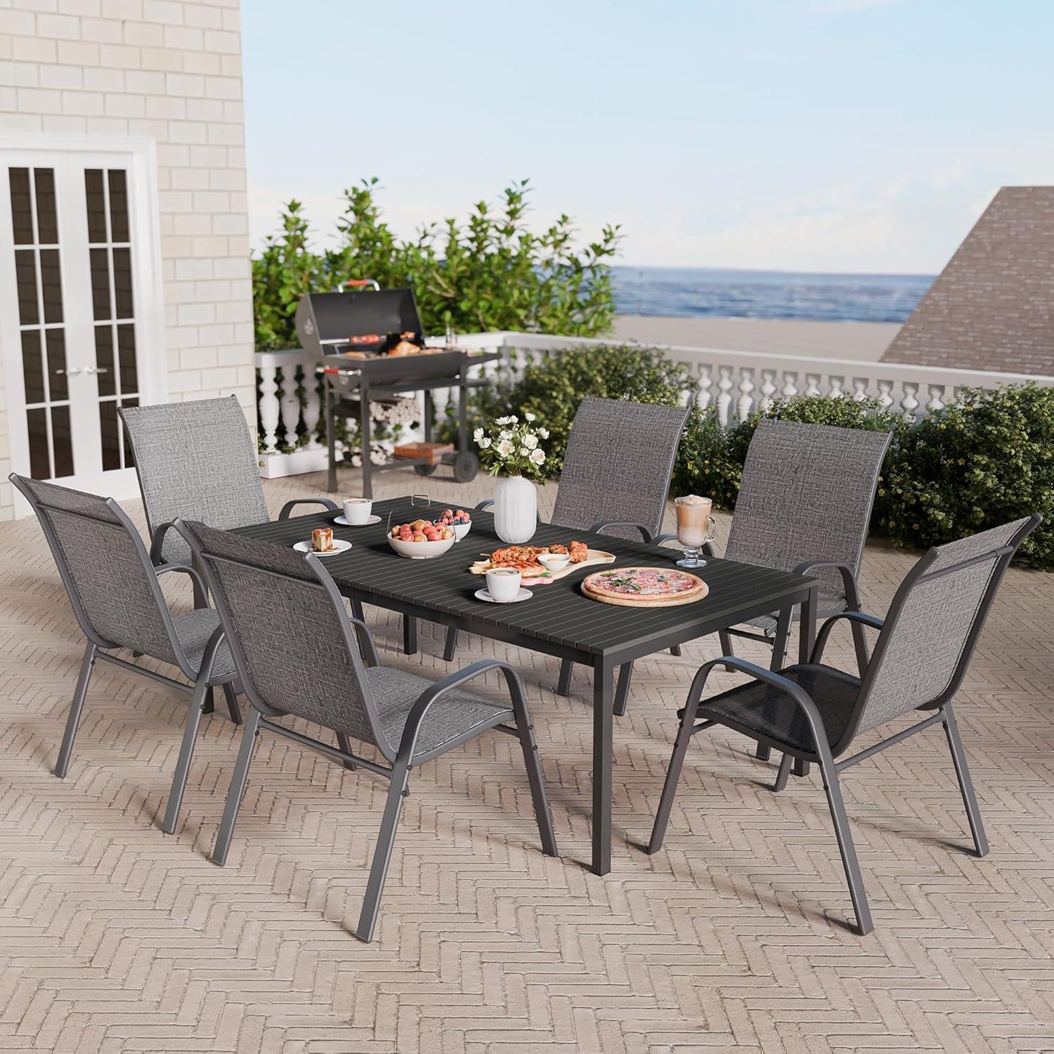- 【7-Piece Dining Chair Set】This patio dining set contains 1 extended dining table and 6 ergonomic dining chairs. This modern outdoor dining table set features aesthetic appeal that seamlessly blends with various outdoor settings, adding charm and elegance to your patio or garden, which is perfect for your family events.