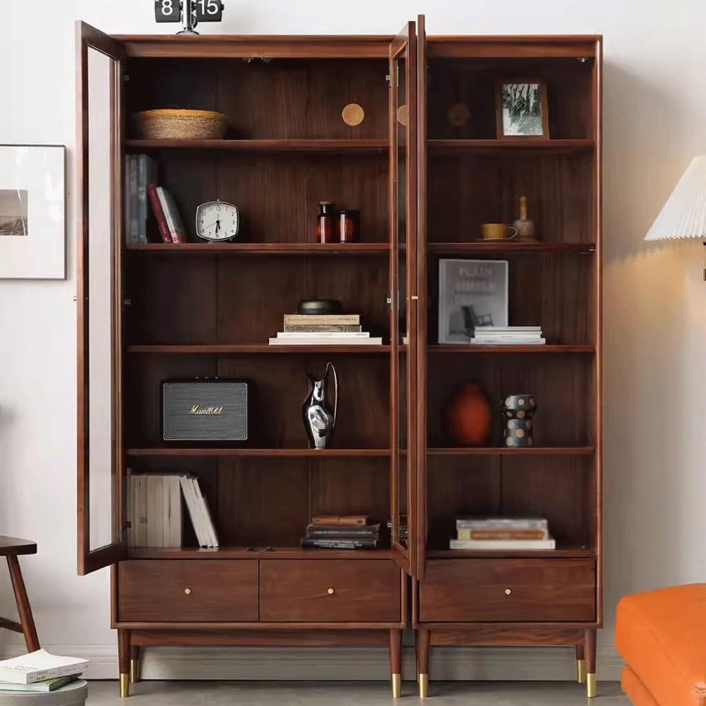 When you live with the Book Shelf Bookcase Storage Display Bookshelf Solid Wood Bookcase Glass Door Wall Bookshelf black Walnut Bookcase Display Cabinet Storage Rack Storage Cabinet for CDs/Movies/Books/Display Shelves over time, it stops being a thing you’re inspecting and starts to sit in the room with a quiet familiarity; the doors carry the fingerprints of the hands that open them, the shelves adapt to the weight and shape of what you reach for.In daily routines you notice how it uses space — a temporary perch for a cup, a gap where a stack of papers grows, a surface that gathers small scuffs from everyday movement.As the room is used and in regular household rhythms,its presence punctuates coming and going rather than demanding attention. After a while you simply notice it becomes part of the room.