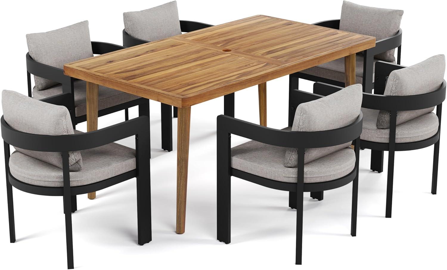 • 【7-Piece Dining Chair Set】This patio dining set contains 1 extended dining table and 6 ergonomic dining chairs. This modern outdoor dining table set features aesthetic appeal that seamlessly blends with various outdoor settings, adding charm and elegance to your patio or garden, which is perfect for your family events.