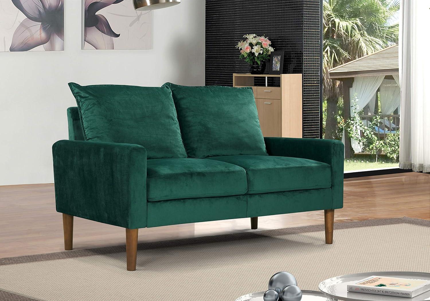 Living with the Petit 2 Piece Couch Set, Mid Century Modern Velvet Sofa & Loveseat for Small Spaces, Upholstered Seats for Living Room and Bedroom, Easy Assembly, Green, you notice it slips into routines quietly over time, more a backdrop than an announcement.In daily routines it becomes the place for a folded throw, a phone left face down, the spot where you read at the same hour; its comfort shifts with how the room is used and how you choose to sit. Small signs—softening on the seat edges, a faint change in the velvet’s sheen—mark ordinary surface wear and make it feel like something that belongs in regular household rhythms. After a while it simply rests and becomes part of the room.