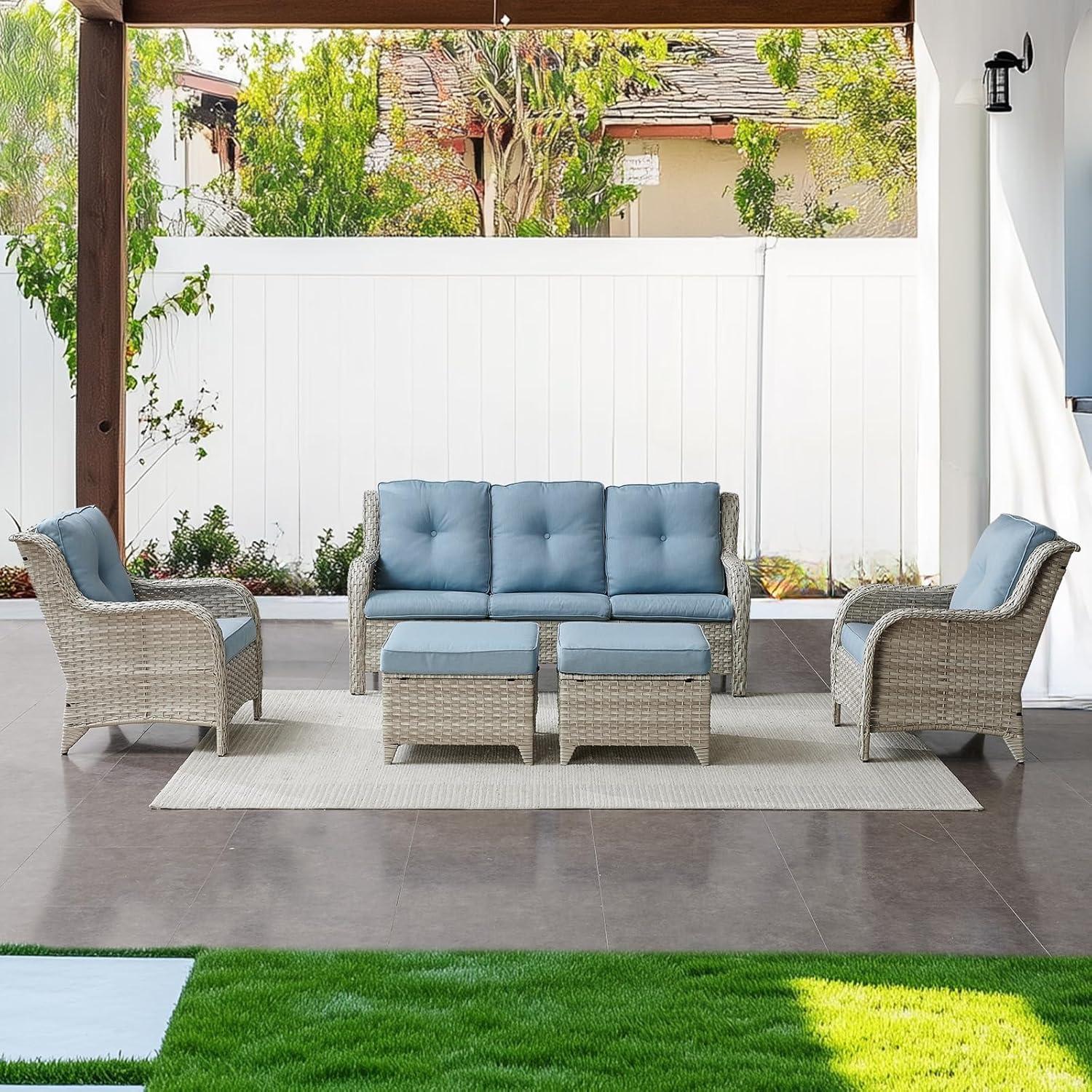 After spending considerable time with this set, we appreciate how it balances style, comfort, and durability seamlessly. The deep seats and thoughtfully curved armrests offer ergonomic support, making each moment spent outdoors distinctly relaxing. The light gray wicker paired with the baby blue cushions gives it a fresh, inviting look that complements various outdoor aesthetics without overpowering the space. Plus, the protective coating on the cushions adds peace of mind, knowing they’ll stand up well against sun and water exposure. The set’s build quality is remarkable, with a sturdy steel frame ensuring longevity and a weight capacity that accommodates most users comfortably.