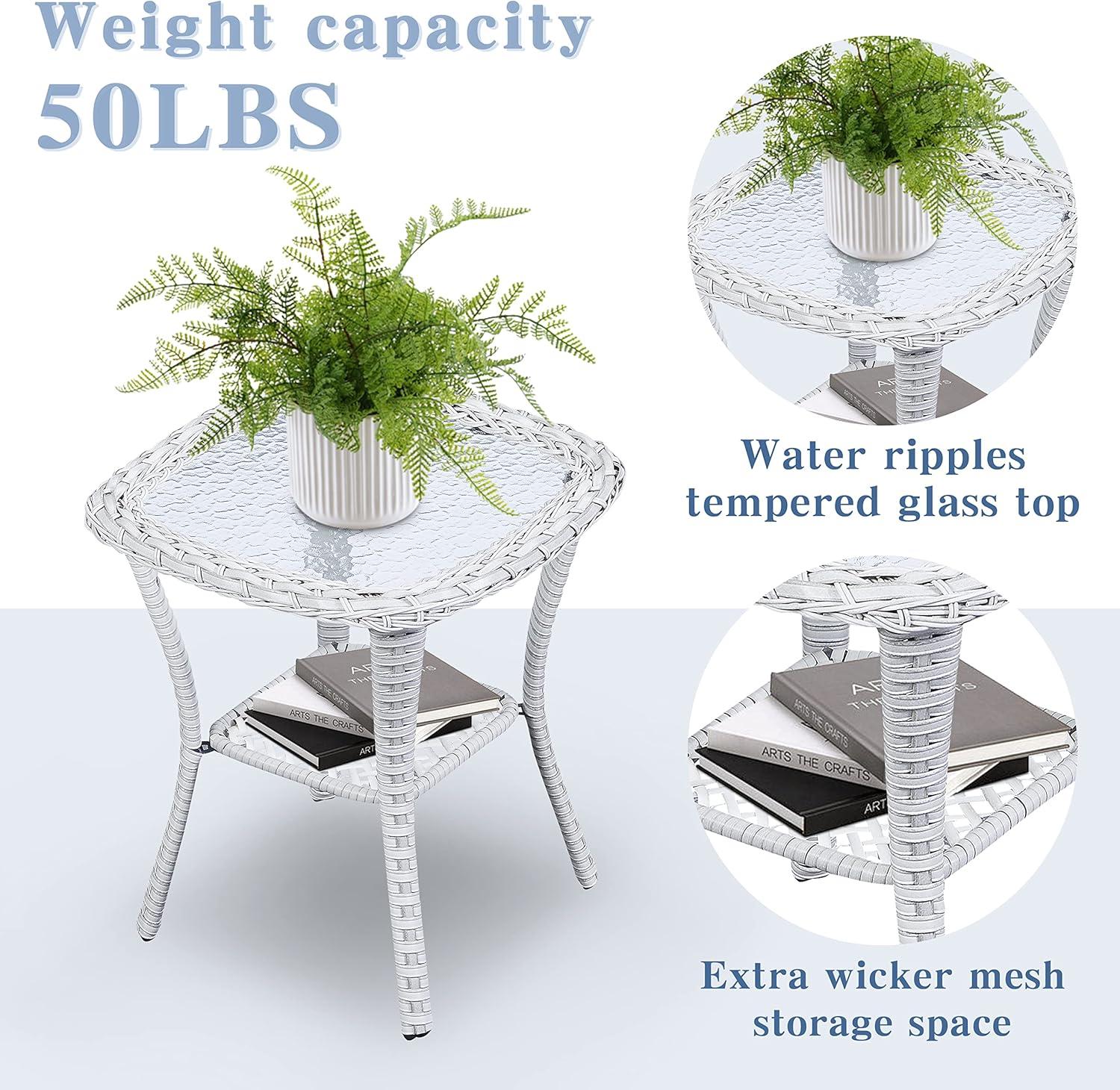 | Hand-woven PE rattan offers a durable, weather-resistant build perfect for outdoor use | Glass table top weight limit is only 50 pounds, so heavy items require caution |