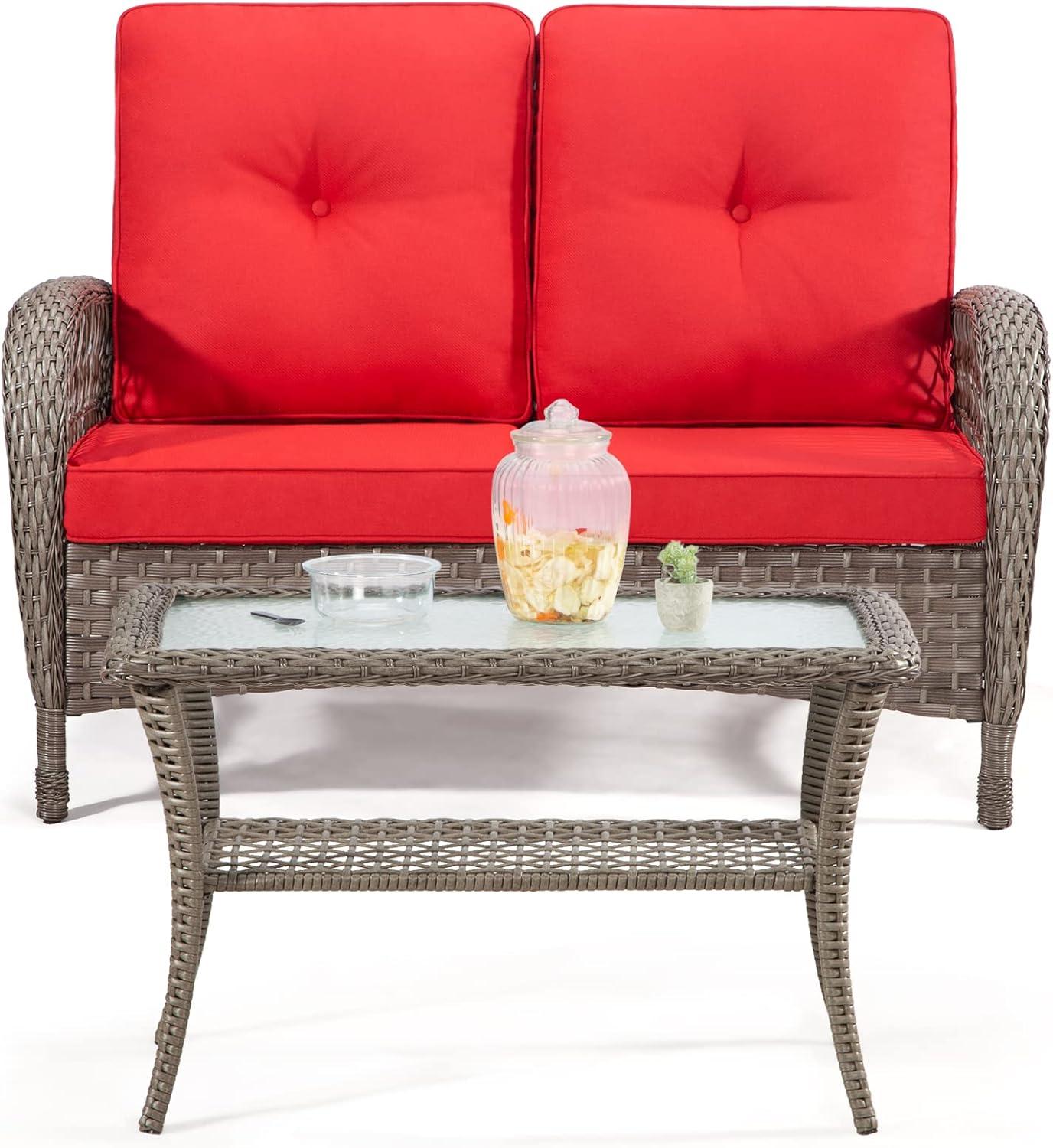 After spending time with this stylish and practical patio set, we feel it offers a great balance of design, comfort, and durability. The ergonomic structure combined with olefin cushions provides supportive and cozy seating that enhances any small outdoor area.Its all-weather resin rattan construction stands up well to the elements, making maintenance a breeze and ensuring long-lasting use. We found the included coffee table a thoughtful addition, perfectly sized to complement the loveseat without overwhelming limited spaces.
