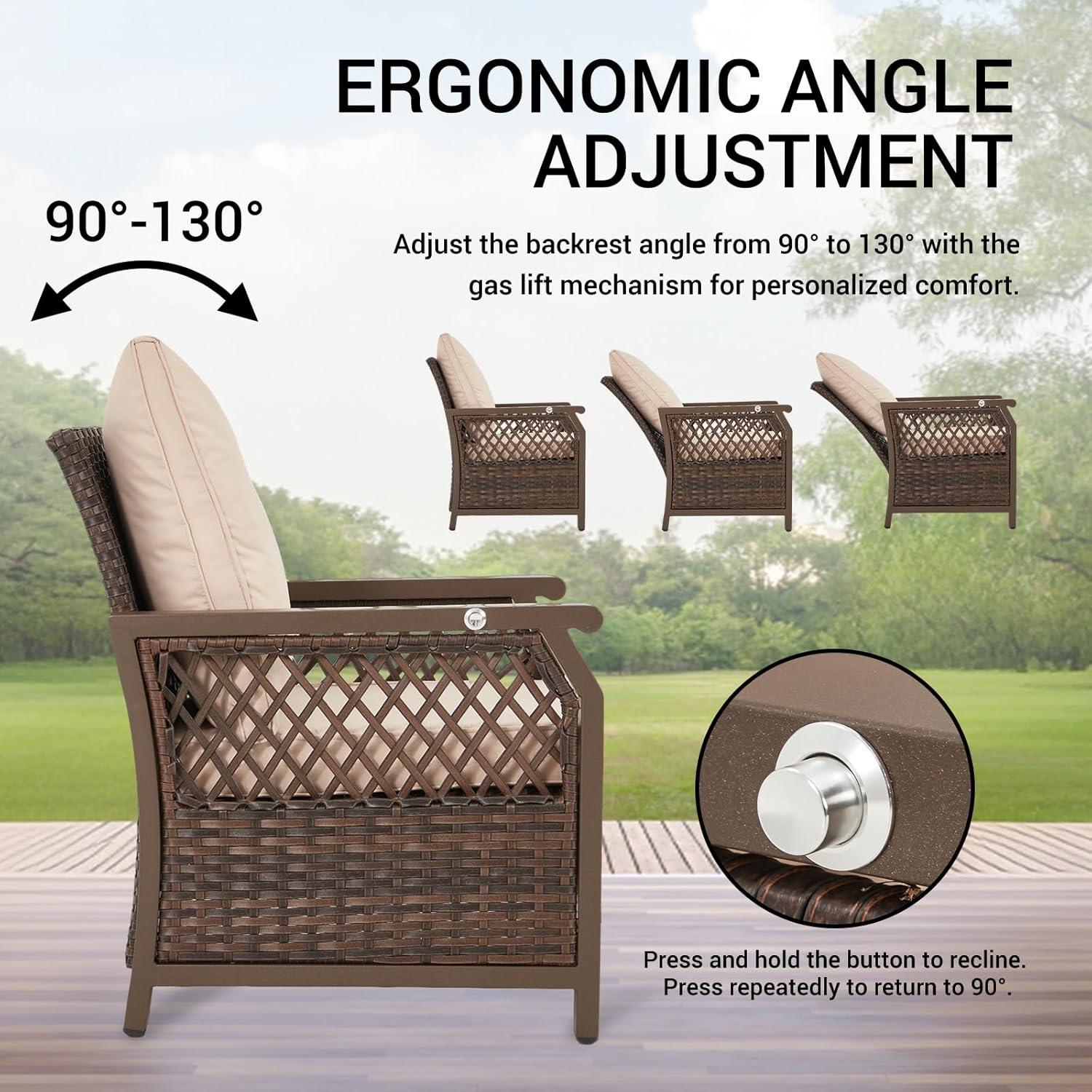 The cushions also deserve special mention for their weather-resistant fabric and premium padding, which stayed plush and comfortable without absorbing moisture or showing signs of mildew. The high back cushions provided dependable lumbar support, enhancing our lounging experience each time we gathered outdoors. We’ve seen little wear and tear so far, with the adjustable reclining mechanism holding steady through repeated use. this set is a dependable choice for anyone seeking long-lasting comfort and style in an outdoor environment.