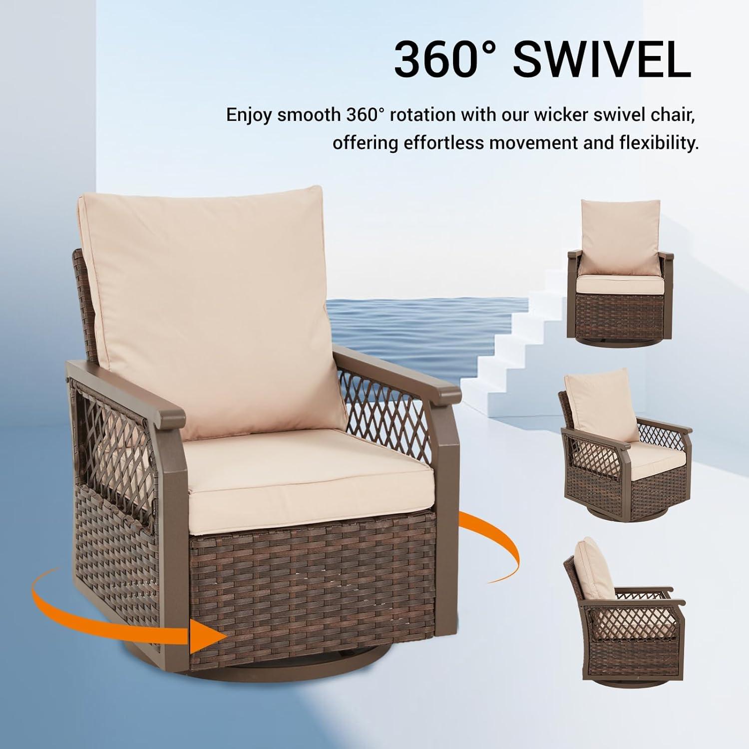 We found the swivel rocking chairs to be a perfect blend of style and functionality. Constructed with handwoven wicker over a powder-coated steel frame, they not only look elegant but are built to endure outdoor conditions. the smooth swivel and rocking motion provide an inviting way to relax, whether you’re enjoying a morning coffee or unwinding at sunset. The high back cushions, made from premium weather-resistant fabric, offer remarkable lumbar support that instantly enhances our comfort during long conversations or quiet moments in the garden.