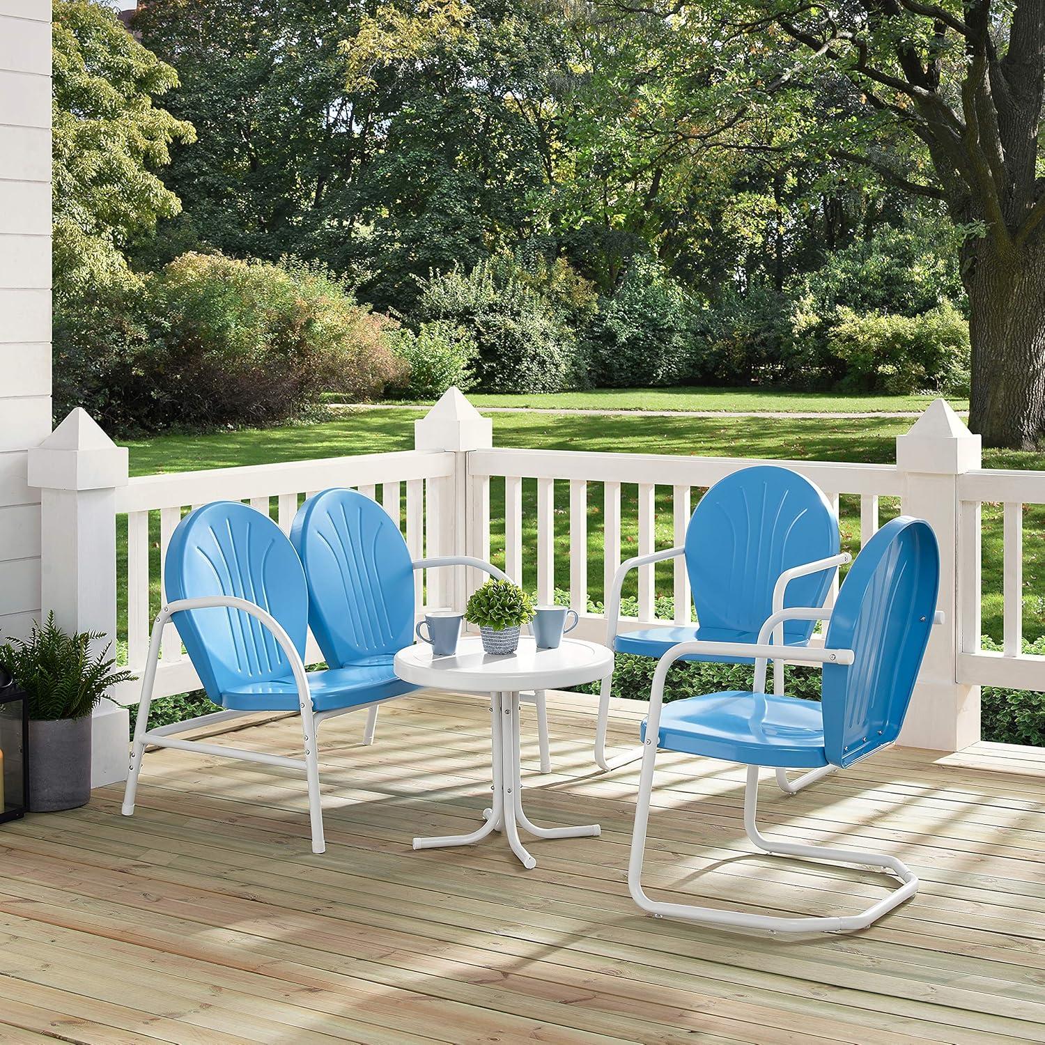| Vibrant Retro Design – The sky blue gloss finish and decorative groove backs instantly transport us to a vintage summer porch scene. | Limited Color Options – While the set is available in a few colors, the signature sky blue is definitely our favorite; others feel less lively. |
