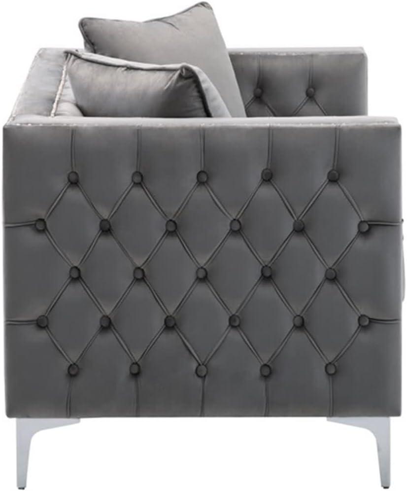 Placed beside existing pieces,the velvet interacts quietly with different surfaces: darker leathers make the grey appear cooler and more reflective,while mid-tone woods soften the grey toward warmer undertones. You’ll see seams and tuft lines more clearly where direct light hits, and the chrome legs often read as tiny accents of brightness that shift as light changes. In everyday use the fabric’s shifting nap and the small adjustments you make — resettling pillows, smoothing armrests — are what define how the color reads over time, rather than a single, fixed hue.