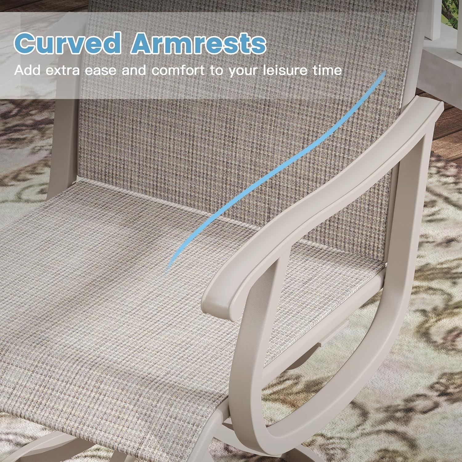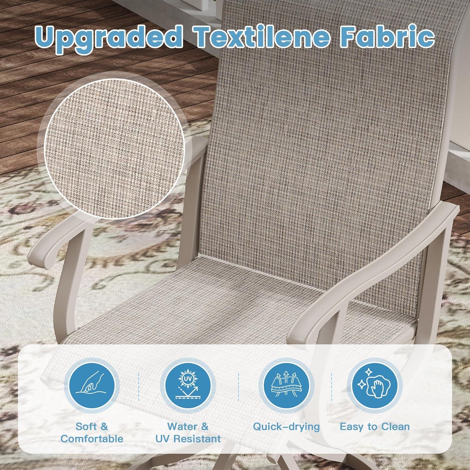 The 360-degree swivel chairs stood out as a highlight for comfort and ease of use. Crafted with premium Textilene fabric, the seats are breathable and water-resistant, making them ideal for lasting outdoor enjoyment without constant upkeep. Stability is well-considered, thanks to the round base and reinforced bracket design, which offer a secure feel without sacrificing smooth rotation. Below is a speedy summary of our key observations: