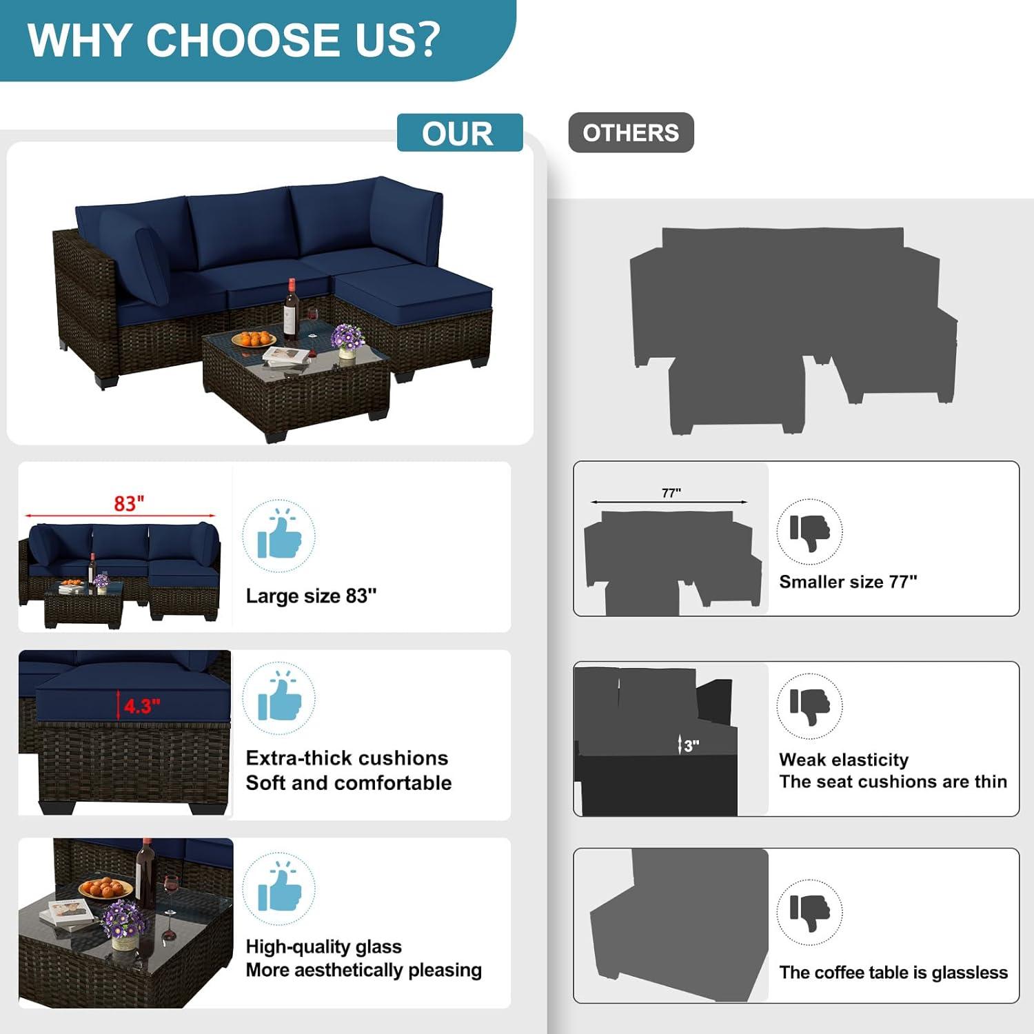 this patio set strikes a fine balance between style, durability, and comfort.While it demands some effort in assembly and care,the modular flexibility and robust build invite us to create memorable gatherings with a touch of outdoor luxury.