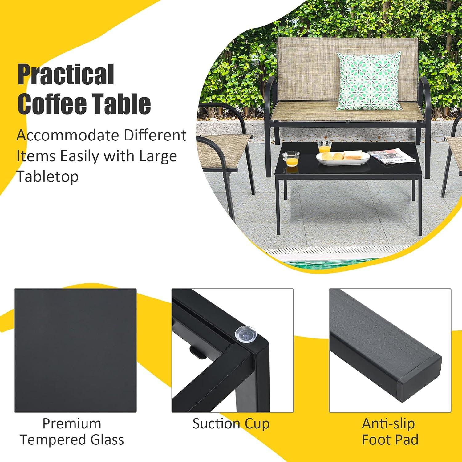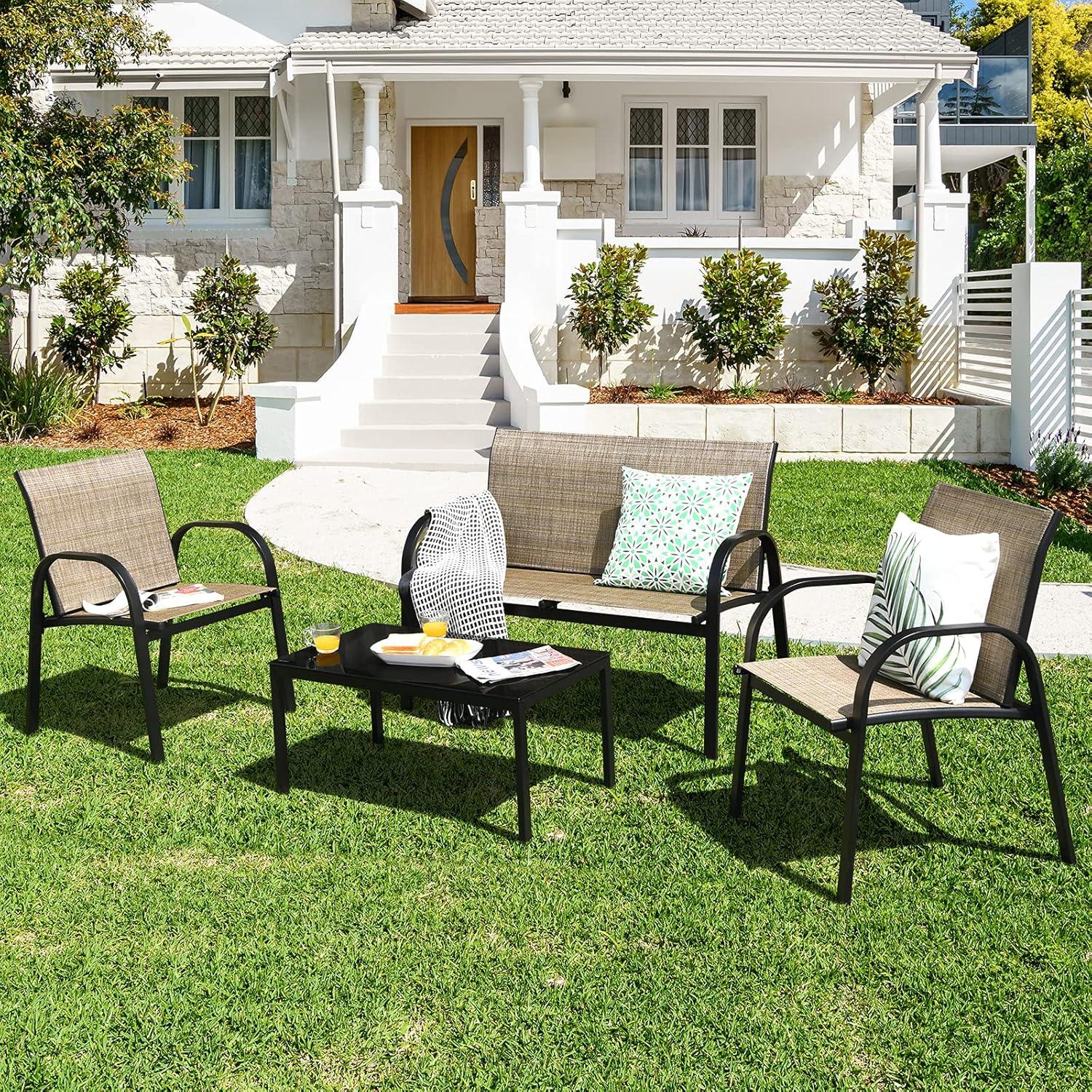 After spending time with this outdoor seating ensemble, we appreciate its blend of durability and sleek design. The solid steel frame ensures long-lasting support, while the modern lines add a refined touch to any garden or patio. With a loveseat, two single sofas, and a functional glass-top tea table, it strikes the perfect balance between comfort and practicality. The sturdy construction supports a wide range of body types, and the spacious table offers a convenient spot for drinks or décor, making this set a great addition for anyone looking to elevate their outdoor living space without compromising on style or utility.