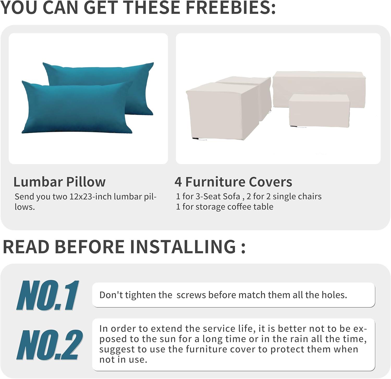 After spending time with this outdoor set,we’re confident it strikes a fantastic balance between style,comfort,and practicality. The breathable, water-repellent cushions are a highlight, making long conversations or relaxing afternoons feel extra cozy, while the sturdy PE rattan woven over a rust-resistant frame guarantees durability through various weather conditions. We particularly appreciate the modular design, offering the freedom to rearrange the 3-seater sofa and two chairs into different layouts that fit any deck or backyard space perfectly. Plus,the cleverly designed storage table adds both elegance and functionality,keeping essentials like snacks or cushions within arm’s reach without cluttering the area.