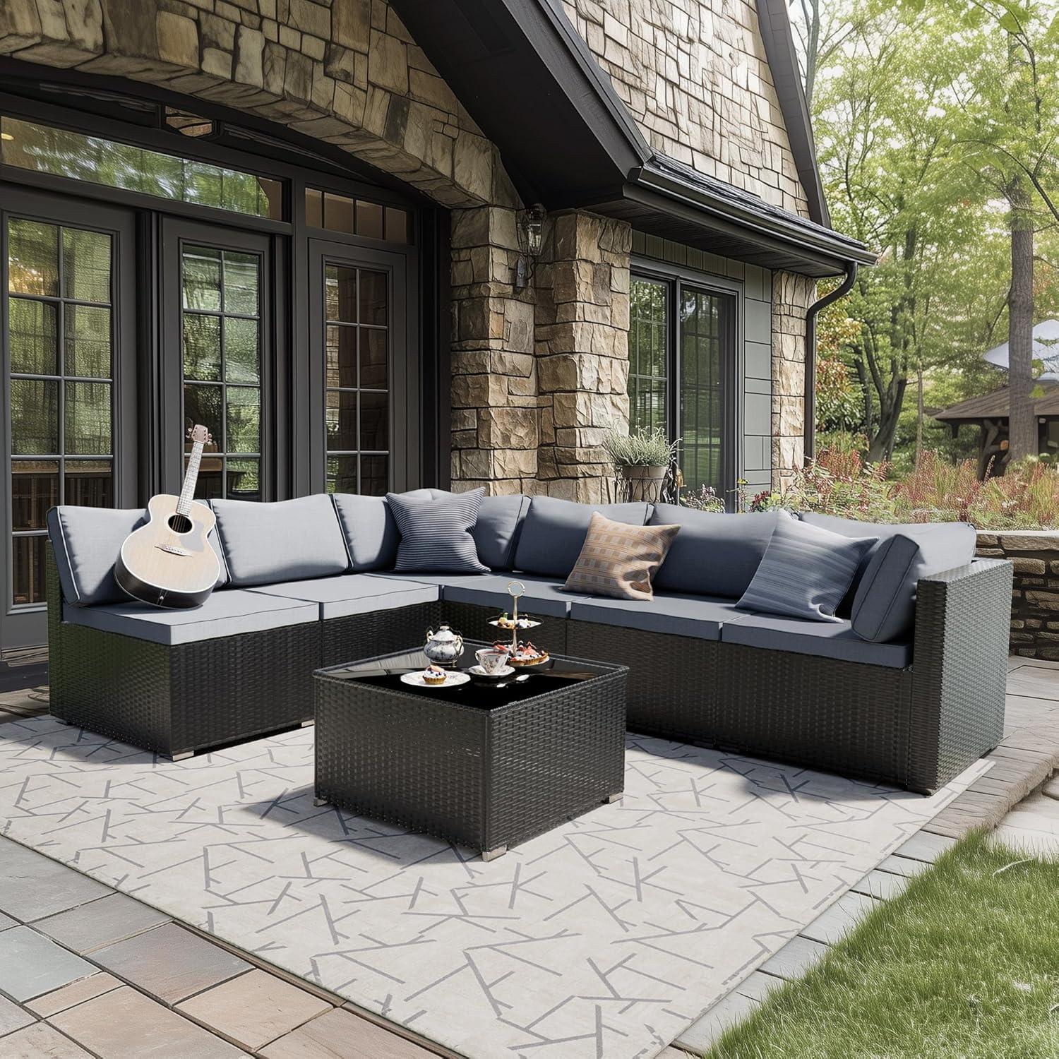 As we wrap up our look at the Skyfish 7-Piece Patio Furniture Set, it’s clear that this modular outdoor sectional brings both style and comfort to any backyard or poolside space. With its durable wicker rattan build, cozy cushions, and sleek glass table, it offers a versatile setup perfect for relaxing or entertaining. Just remember to follow the assembly guidelines closely and care for the furniture properly to keep it looking great and functioning safely for seasons to come. Whether you’re outfitting a porch or creating an inviting outdoor retreat, this set strikes a nice balance between practicality and aesthetic appeal.