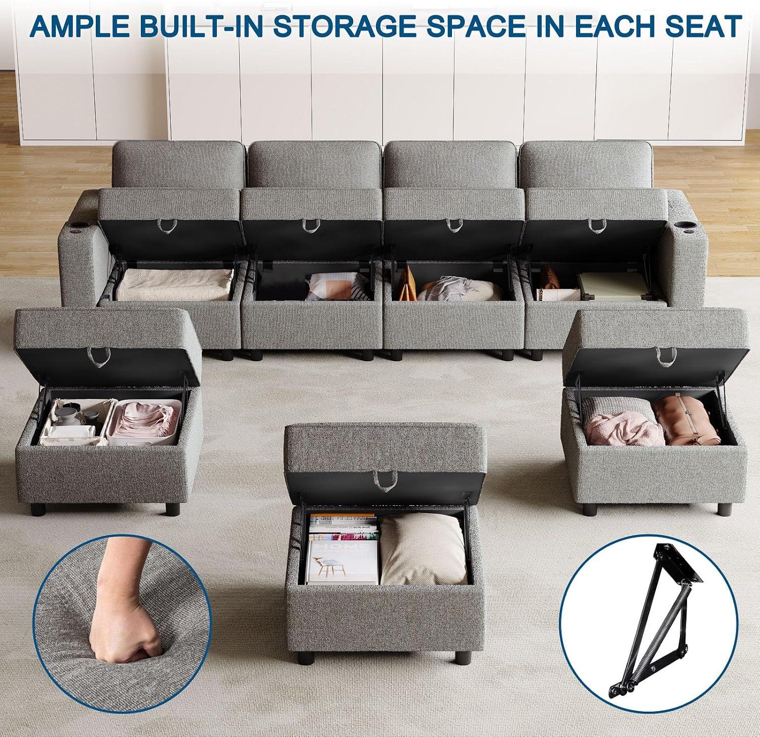 Beyond optimizing space, this integrated storage solution enhances the flexibility and adaptability of the whole setup. It supports a weight capacity of up to 300 lbs while maintaining comfort and structural integrity thanks to its solid wood frame and resilient foam filling. Whether reshaping your sectional into an L-shape, U-shape, or a sleep sofa, the hidden seat storage remains a constant asset, making it easy to customize both style and function. Here is a quick overview of the seat storage benefits: