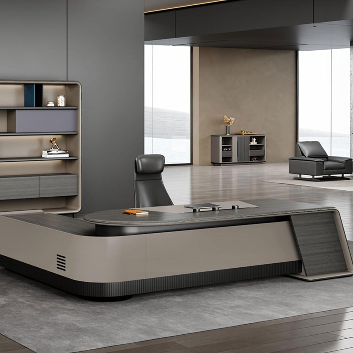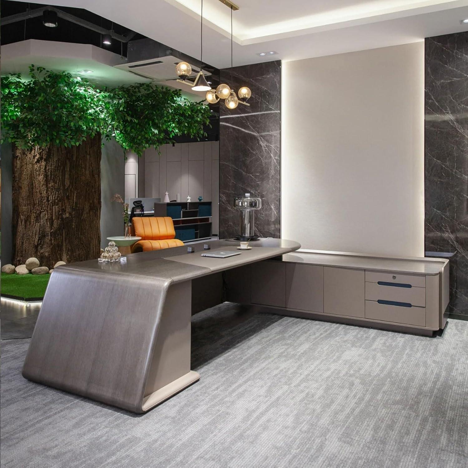 Over time the DLCQIJI L Shaped Desk with Drawers, 110.2 Inch Business Furniture L Shaped Computer Desk for Home Office executive Office Desk Workstation slips into the corner with a quiet, steady presence.Its broad surface learns the room’s rhythms — a laptop that spends mornings on one side, a stack of papers that migrates, the chair offering a particular give that becomes familiar in daily routines. Small scuffs and the soft polish where palms frequently enough rest mark how the surface wears as the room is used, folding the desk into regular household rhythms. It rests and becomes part of the room.