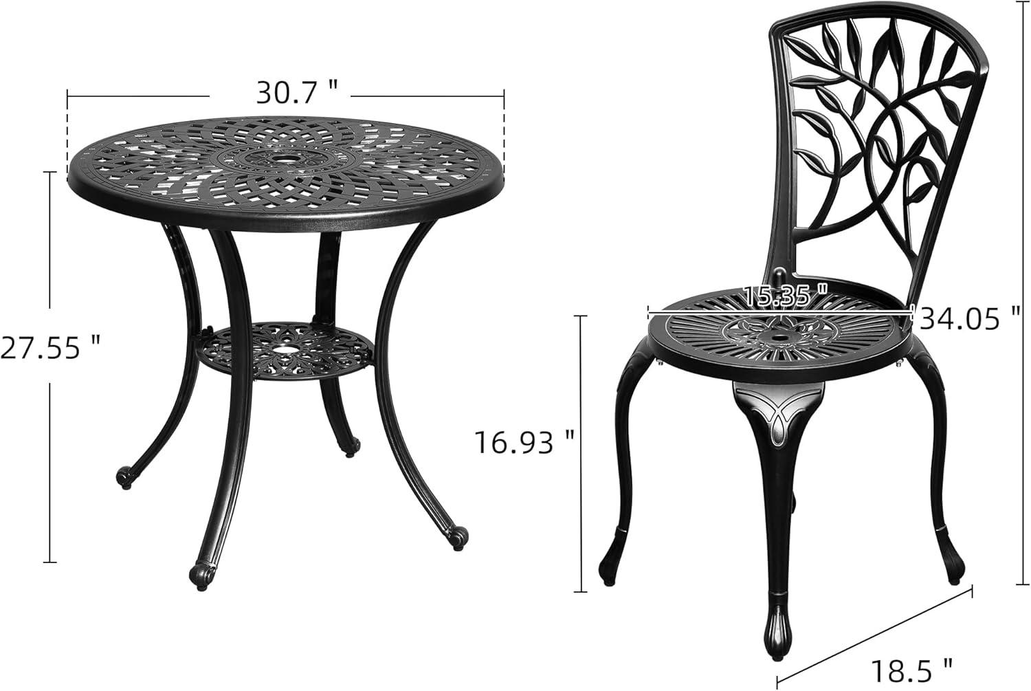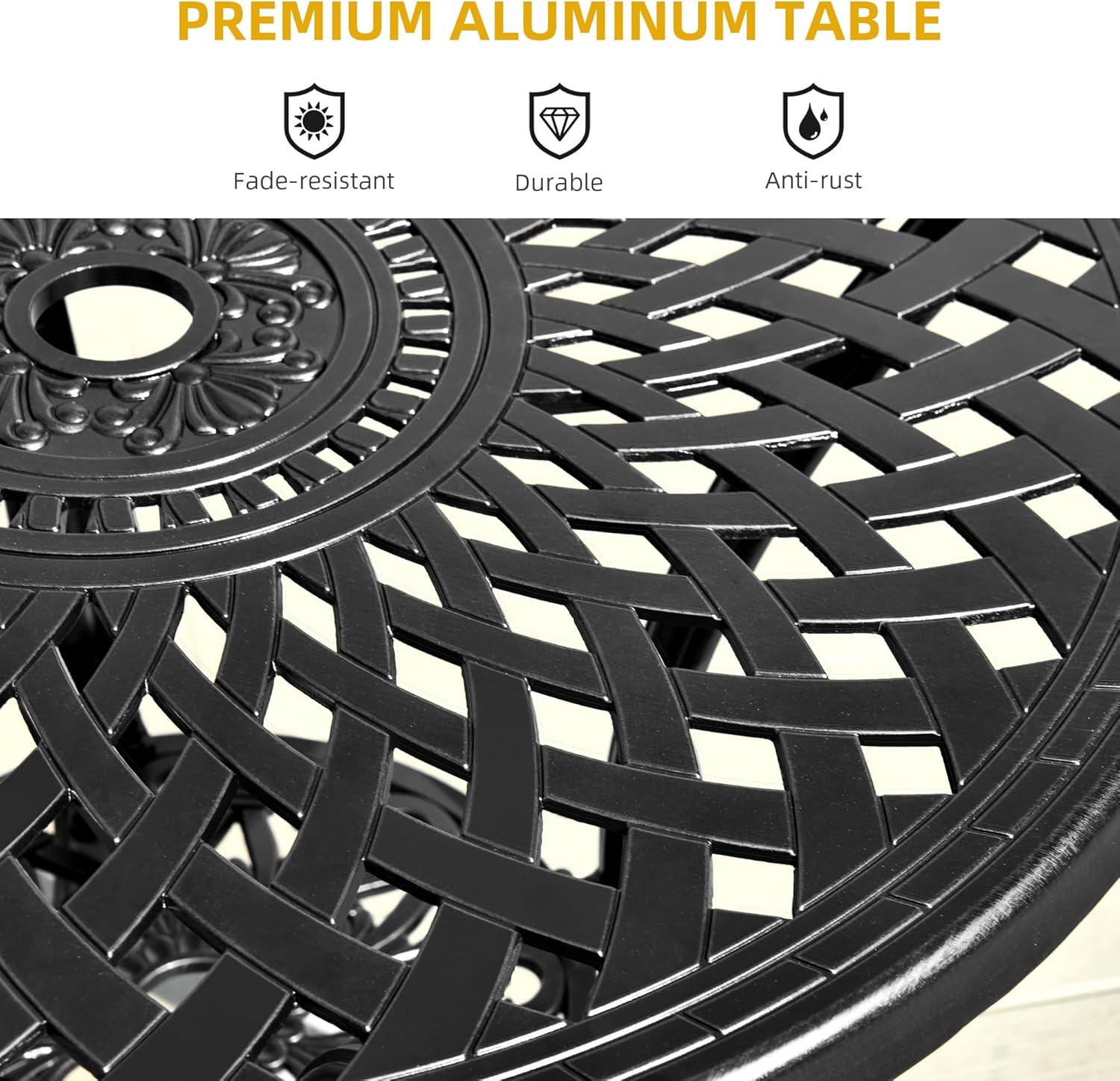 Practical limitations show up in specific moments rather than constantly. Umbrellas with slimmer poles slide in without fuss, while a handful of thicker shafts tried in testing did not pass through the opening easily and required a bit of force. When an umbrella is deployed on a breezy day, the wind’s load can transfer through the pole into the table and, by extension, into the chairs, producing a noticeable sway at times. The decorative cast pattern looks consistent while seated but also tends to catch leaves and gritty debris in the recesses; routine wiping clears most of it,though a brush is sometimes needed after a windy afternoon.