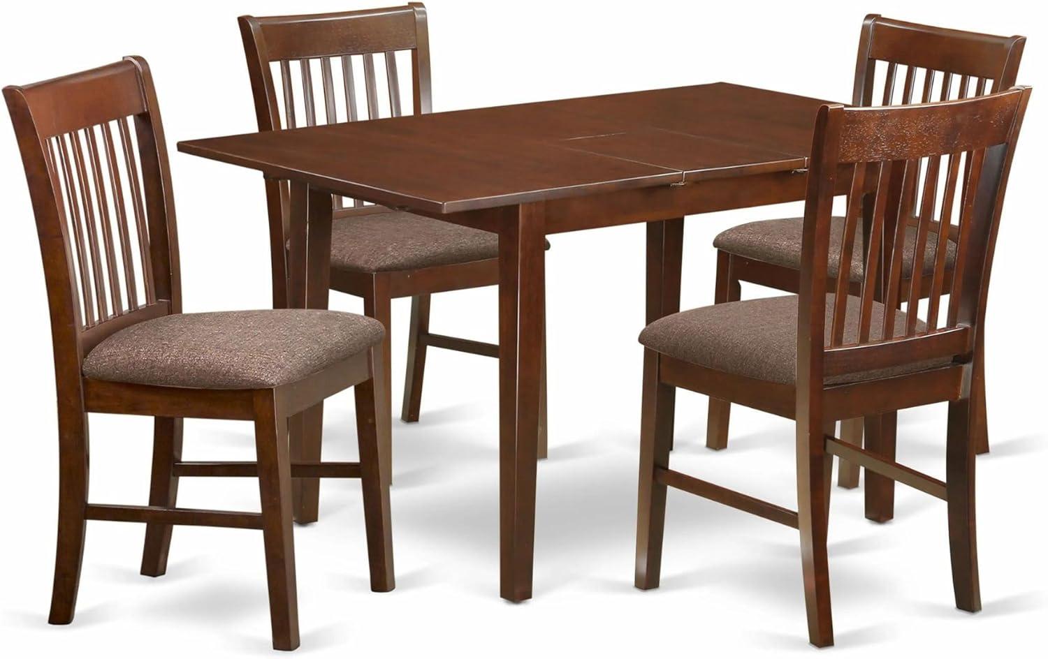 Light pools across the mahogany top and you find your hand lingering on the grain — the first quiet impression of East West Furniture’s Norfolk 5‑piece dining set, wich you can call the Norfolk set. From a few paces away it has a steady visual weight, the rectangular surface reading significant without overwhelming the room.Up close,the linen-like seat fabric gives a faint drag under your palm and the foam beneath yields then settles,a small,reassuring motion. The slatted backs and solid legs keep the lines familiar, while the seats feel noticeably broad beneath you. It sits in the space like something already softened by everyday light and use rather than staged for a catalogue.
