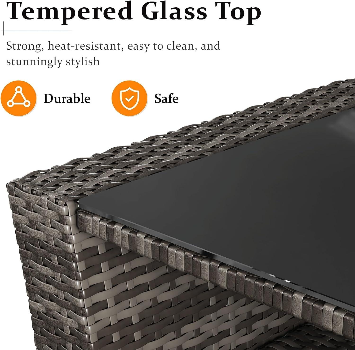 - 【Complete 3-Piece Outdoor Seating Set】This stylish patio furniture set includes 2 single sofas and 1 coffee table, perfect for creating a cozy seating area in your garden, balcony or sunroom. The 5 mm round rattan weave and tempered glass table top combine durability with contemporary design.