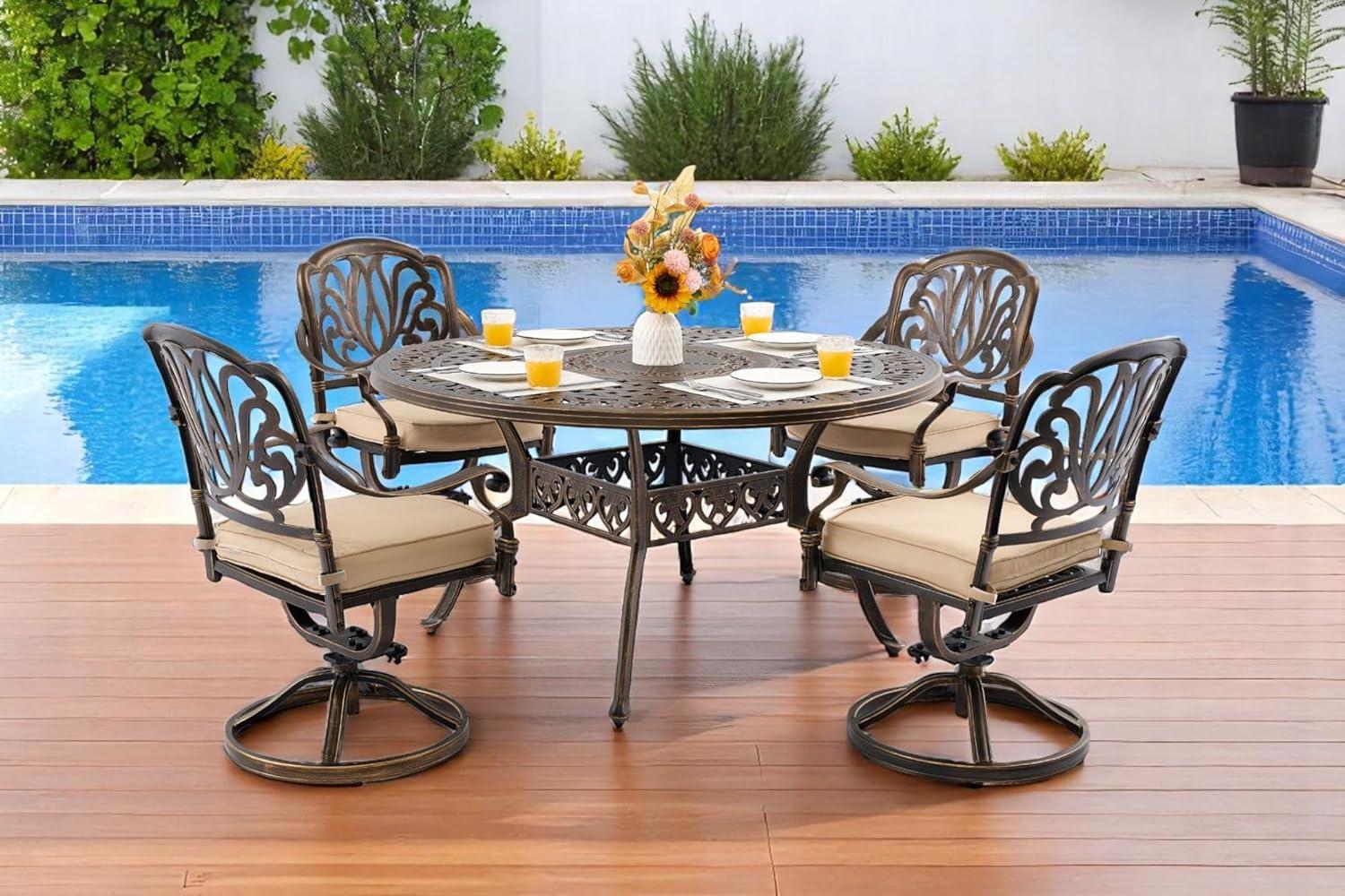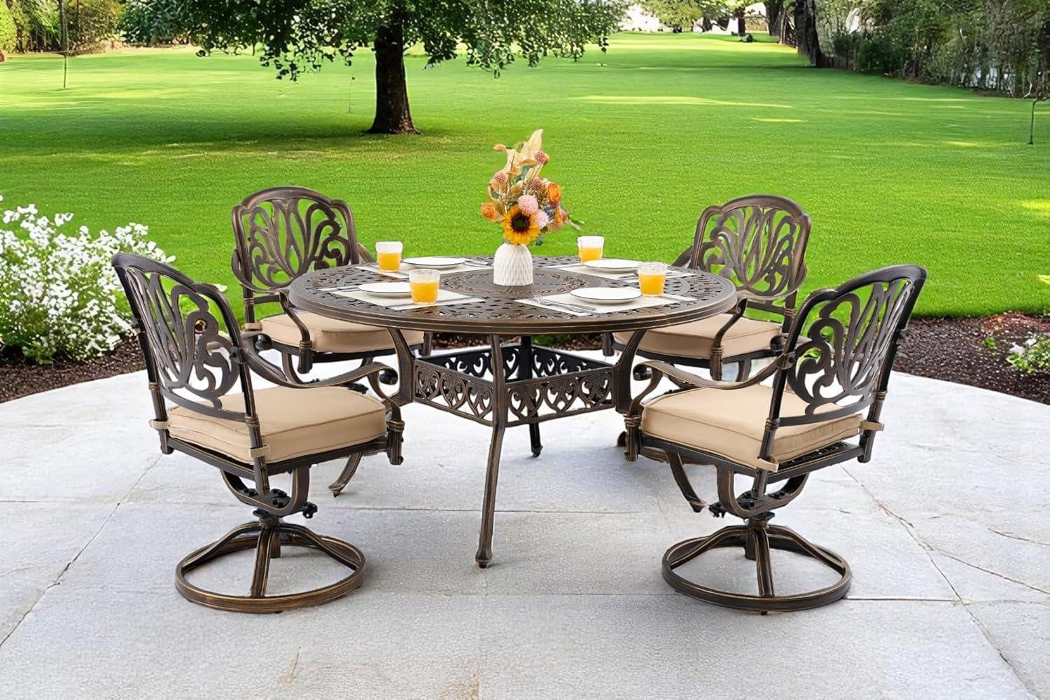 Stepping into the world of outdoor dining, we recently had the chance to experience the 5 Piece Cast Aluminum Outdoor Dining Set-a retro-inspired collection that promises both elegance and durability. Designed for intimate gatherings,this set includes a spacious 54″ round table paired with four Elizabeth swivel chairs,each outfitted with plush cushions and an umbrella hole to keep things comfortably shaded.Join us as we dive into how this blend of classic design and sturdy craftsmanship performs in real-life settings by the porch, poolside, or garden.