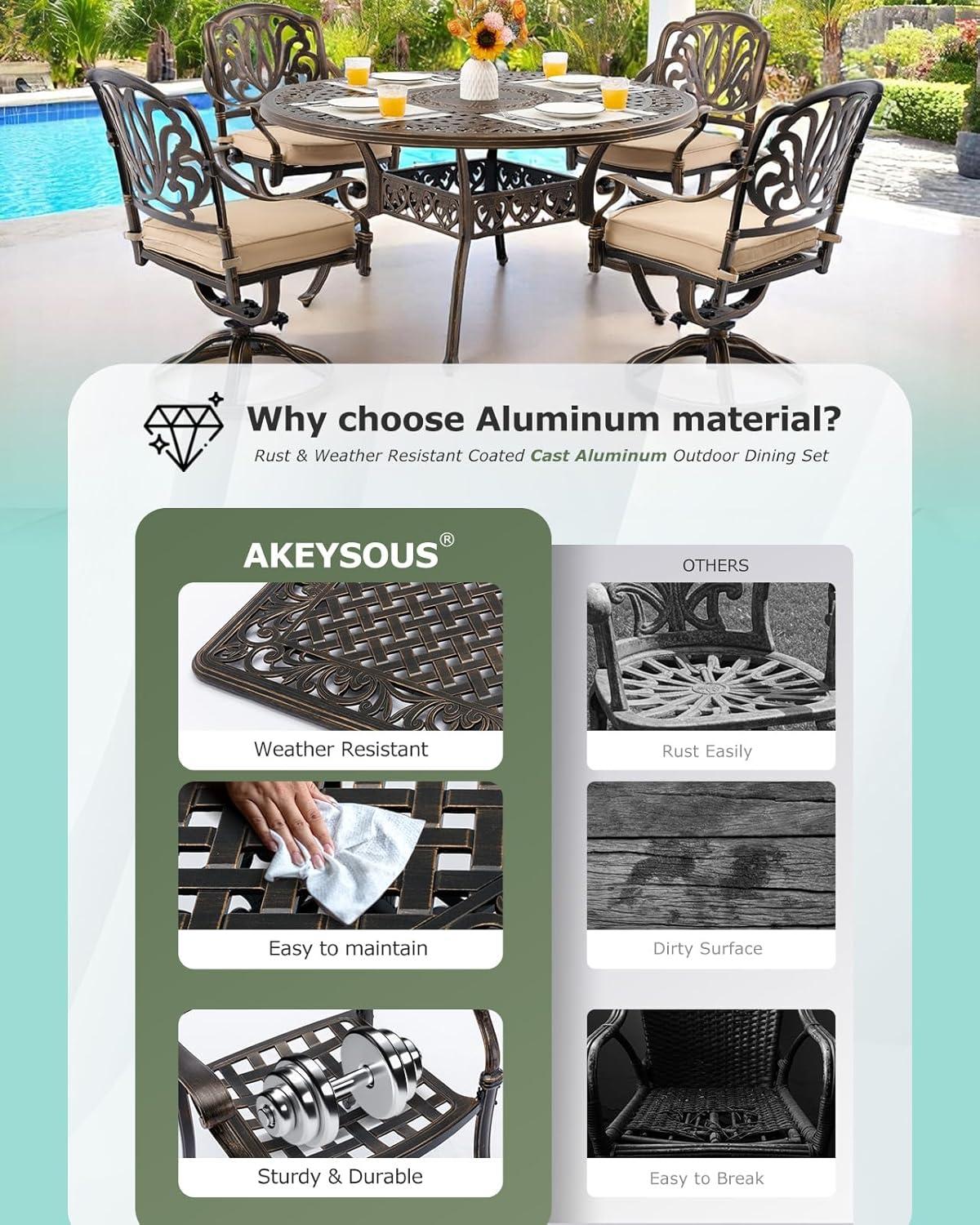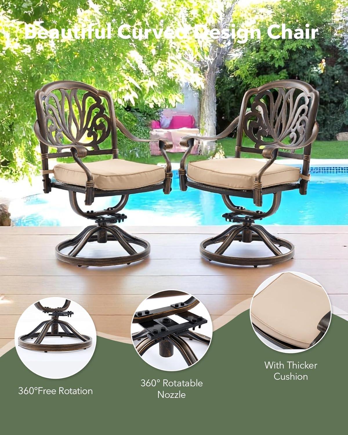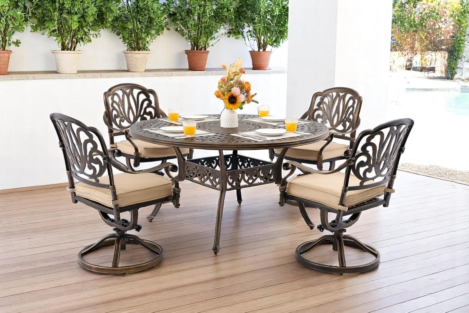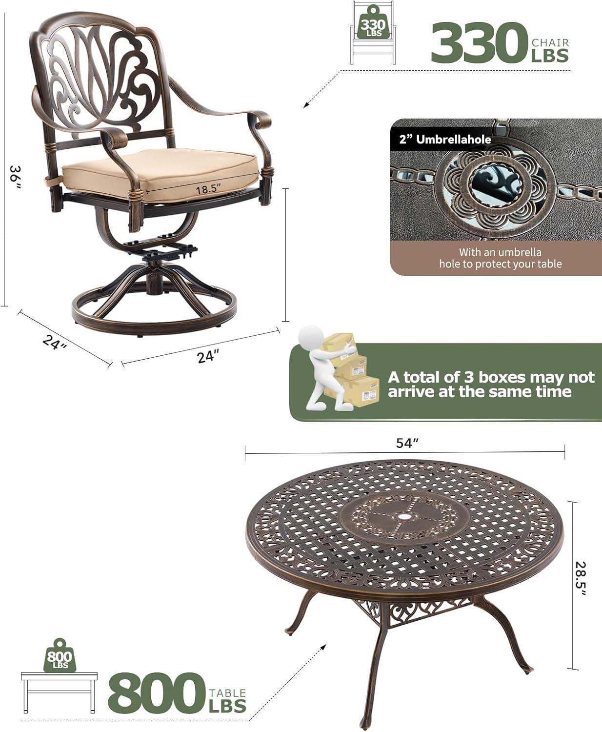 After spending ample time evaluating this outdoor dining ensemble, we find it a remarkable blend of style, comfort, and durability. The cast aluminum construction means it can withstand various weather conditions without rusting or fading, making it an effortless choice for year-round outdoor use. Its palace-inspired design adds an elegant touch that elevates any patio or garden setting,while the 360° swivel chairs with plush cushions ensure that comfort is never compromised during long family meals or casual gatherings. The inclusion of an umbrella hole in the generous 54″ round tabletop offers excellent versatility, allowing you to enjoy shaded relaxation with ease.