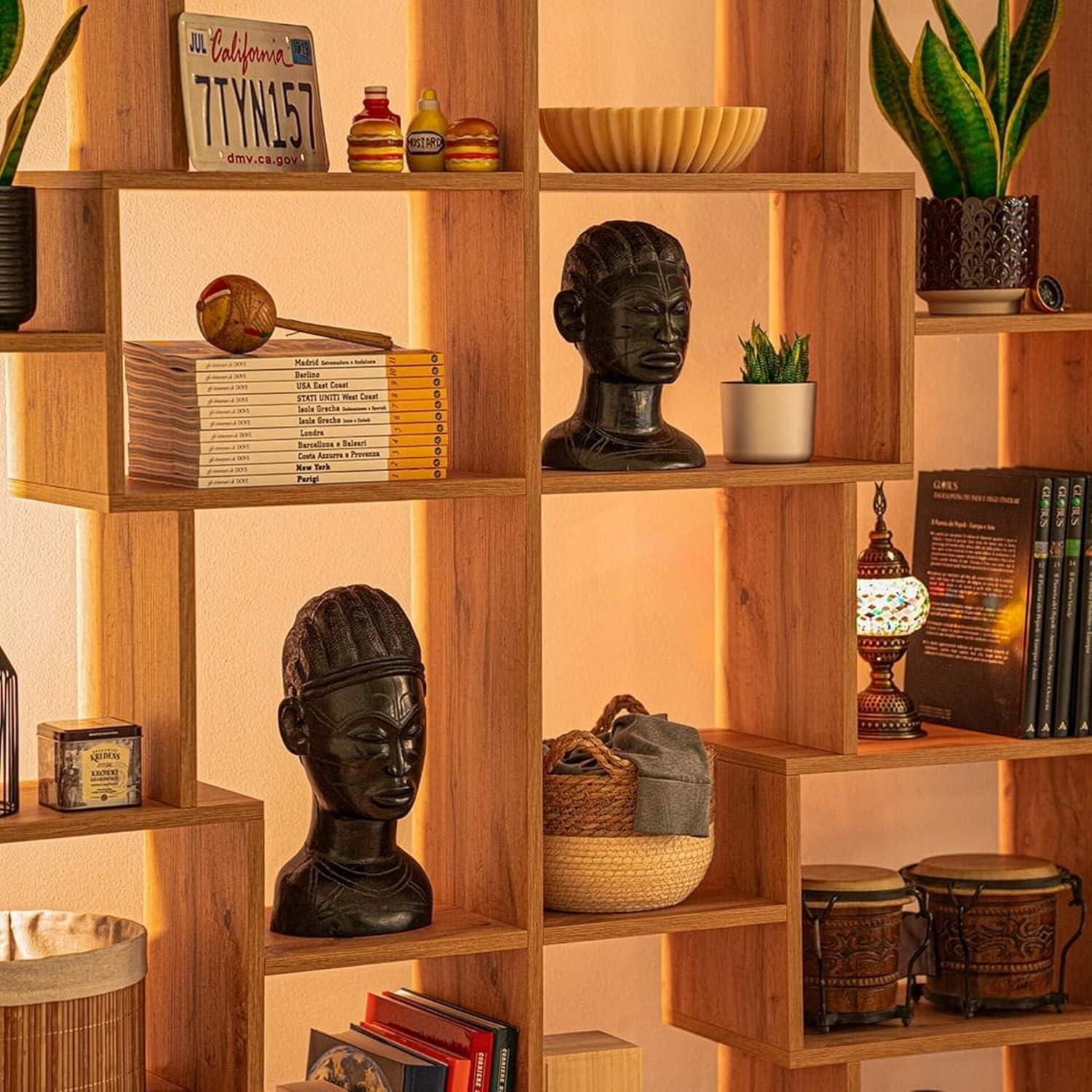 Our living space has truly benefitted from the distinctive charm this bookcase introduces. The rustic oak finish adds warmth and a natural elegance, effortlessly complementing various décor styles-from modern minimalism to cozy vintage. Its asymmetrical shelf design animates the room with dynamic lines and unique compartment shapes, breaking away from monotonous shelving to create an engaging visual rhythm. Whether filled with books,decorative objects,or plants,it transforms an ordinary wall into a curated gallery,instantly enhancing the room’s character and depth.