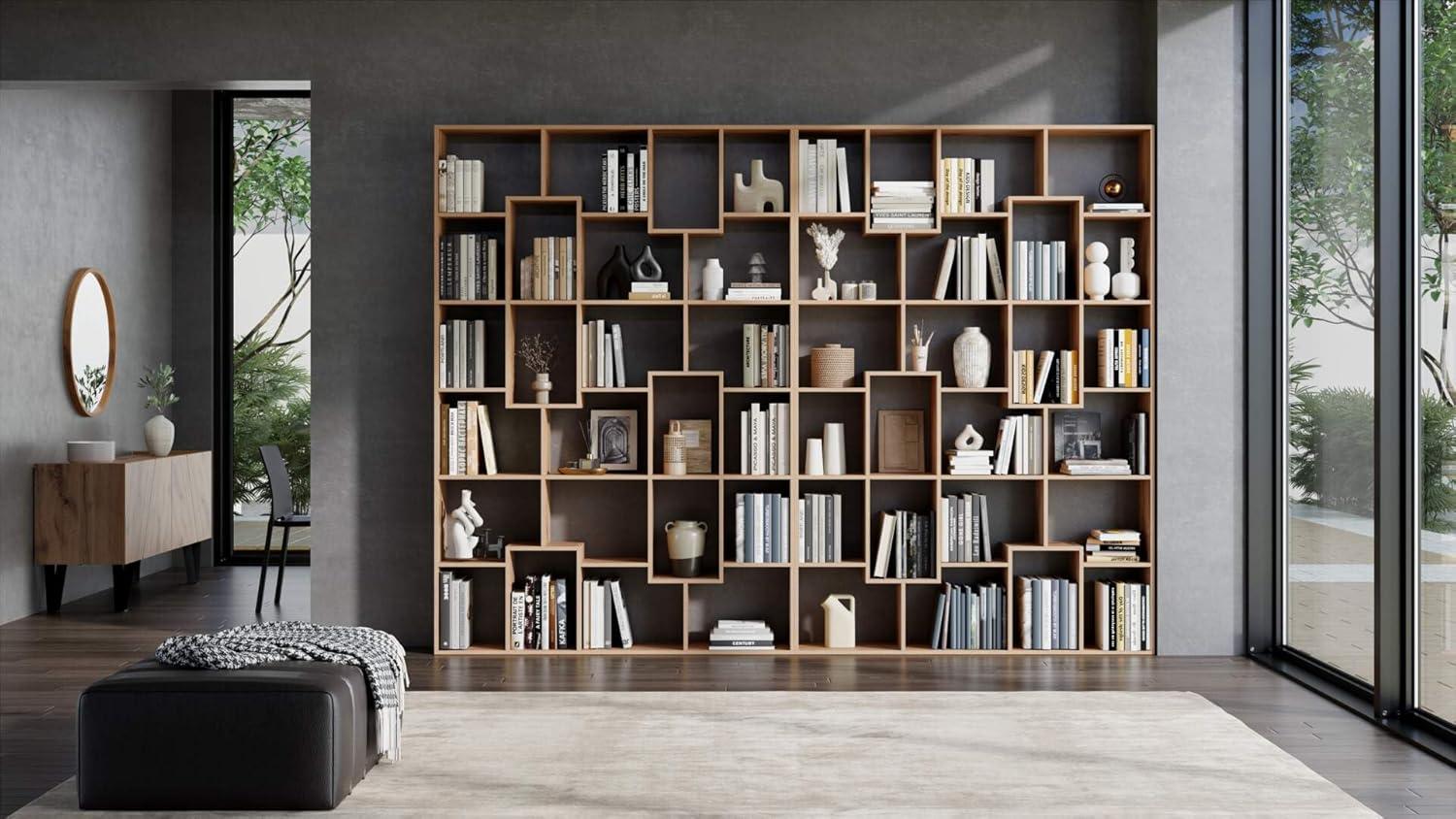 What sets this piece apart is its versatility and thoughtful Italian craftsmanship. Each compartment supports up to 22 pounds, making it suitable for a diverse range of books and decorative items. Additionally, the option to convert some open sections into closed units by adding the optional wall unit offers personalized styling options. The finish’s rustic hue adds warmth while maintaining an elegant profile.it balances aesthetic appeal and practical stability, promising to be a statement fixture in our space.