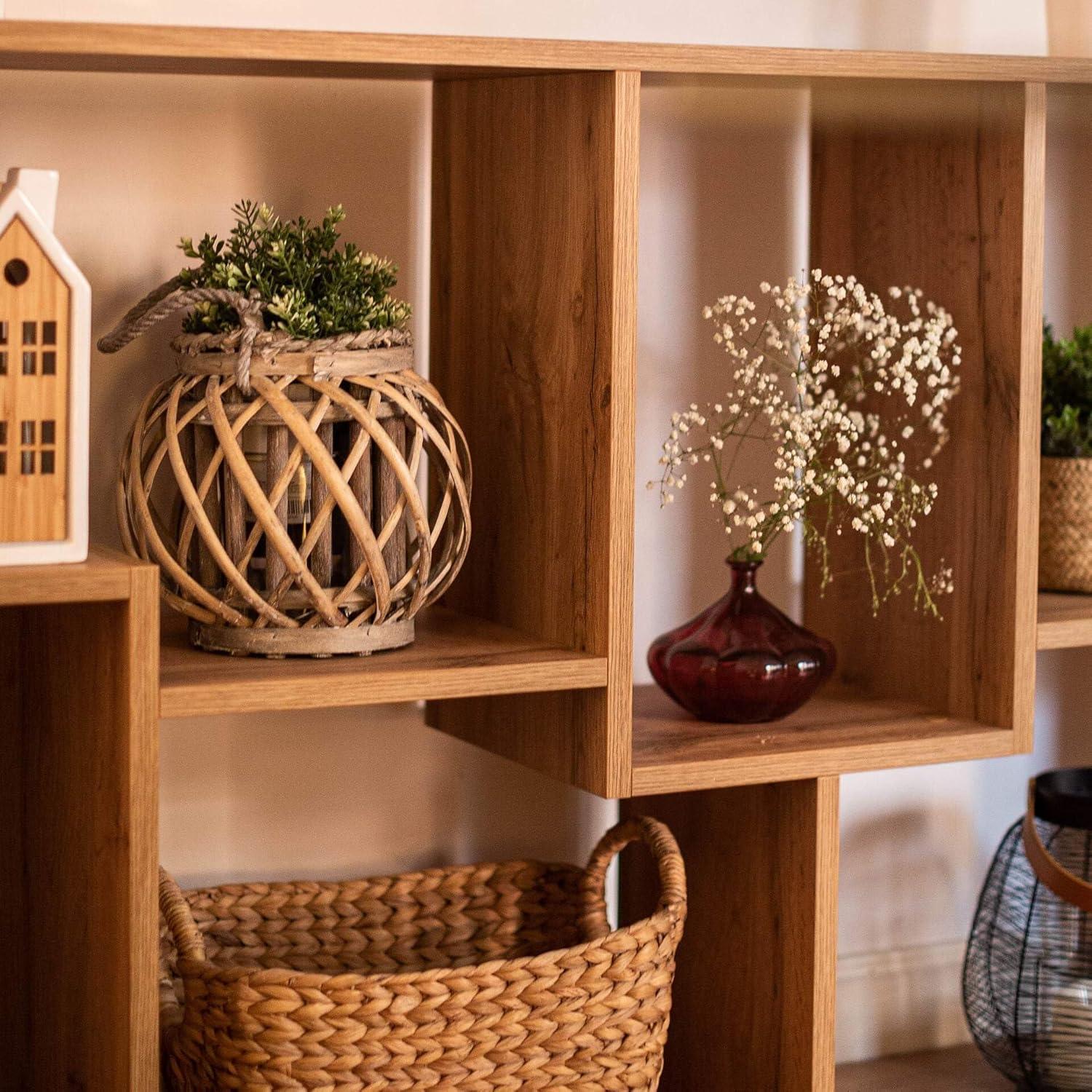 What immediately draws us to this piece is the stunning rustic oak finish, which carries an inviting warmth and a tactile, slightly rough texture that adds an authentic, natural feel to any room. The melamine laminate not only replicates the charm of real wood but also offers durability and ease of cleaning-just a simple wipe with a damp cloth keeps it looking fresh. We appreciate the versatility of the design, allowing it to be positioned vertically or horizontally, fitting effortlessly into living rooms, offices, or even cozier corners of a home. The asymmetrical shelving layout introduces a playful yet sophisticated rhythm to the space, turning ordinary storage into a unique centerpiece.