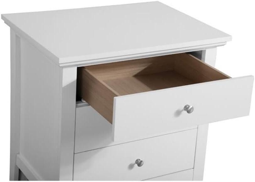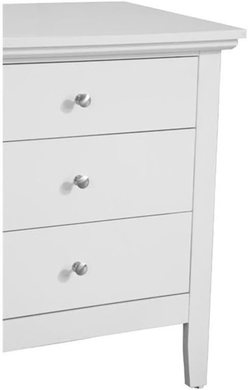 Combining modern sophistication with practical design, this nightstand instantly elevates any bedroom setting. Crafted from a blend of wood veneer and solid wood, it offers a durable yet elegant feel. The pristine white finish lends a clean, versatile look that easily complements a wide range of décor styles. We appreciate the attention to detail, especially the dovetailed drawer construction that ensures long-lasting strength and smooth operation. The metal nickel handles add a subtle contrast,enhancing the contemporary aesthetic without overwhelming the simplicity of the piece. Best of all, it arrives fully assembled, so setting it up is effortless.