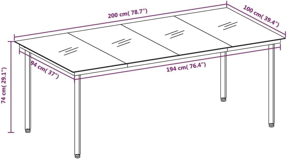 | Dimensions (Table) | 78.7″ L x 39.4″ W x 29.1″ H |