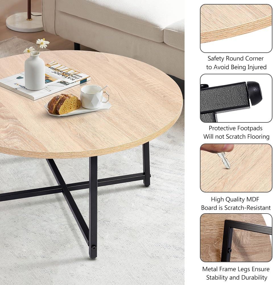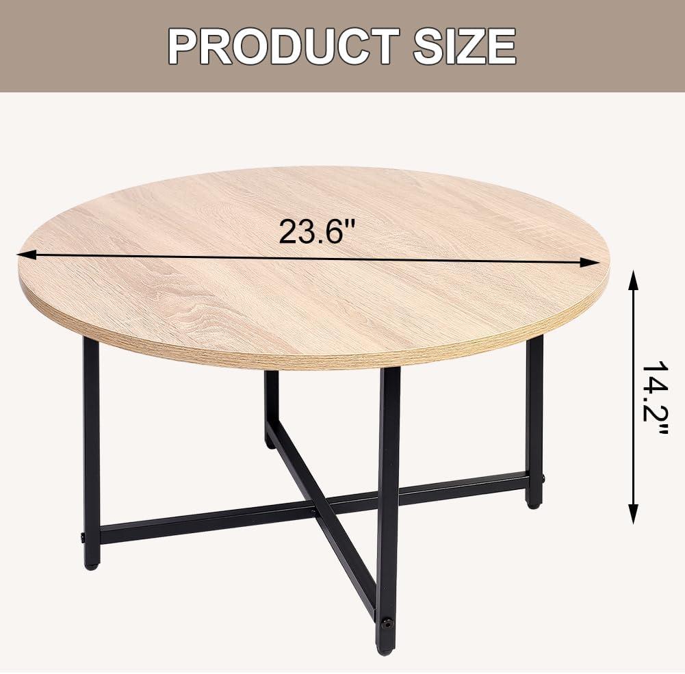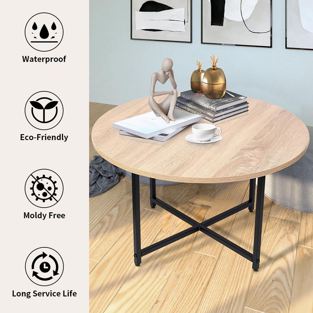 You notice, over time, how the EMUQUD Round Coffee Table,Living Room Table,23.6″ Wood Circle Coffee Table with Metal Frame and Wood Desktop,Easy Assembly,Nature settles into corners of conversation and quiet. in your daily routines it takes mugs and books with a casual comfort, its presence shaping how the room is used and how you pause or lean back; faint scuffs and tiny rings begin to read as history rather than fresh marks. You feel its surface soften under regular household rhythms, and it becomes part of the room’s steady, ordinary presence. It stays.
