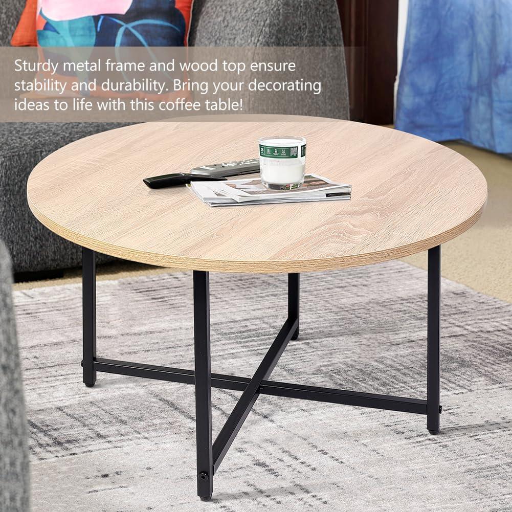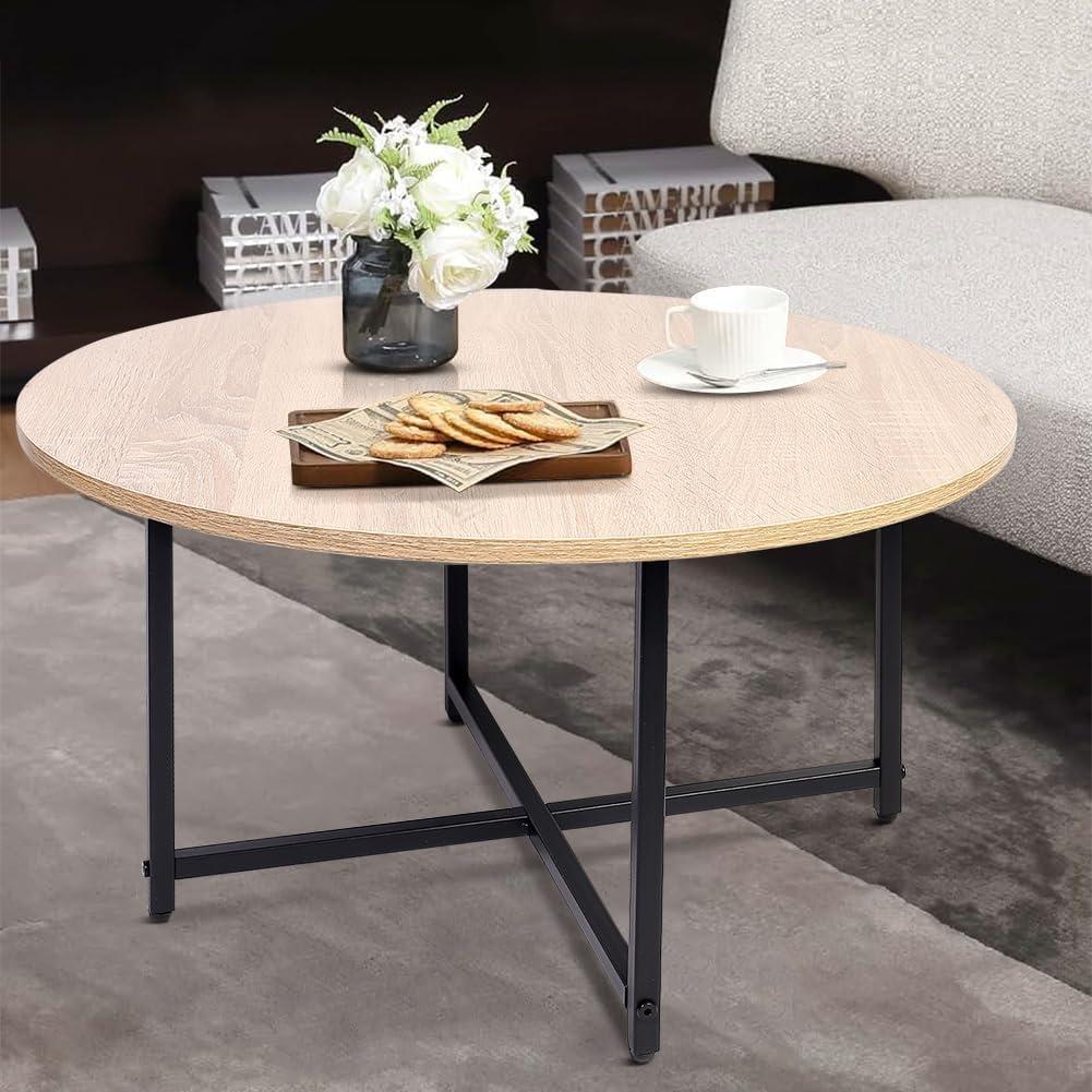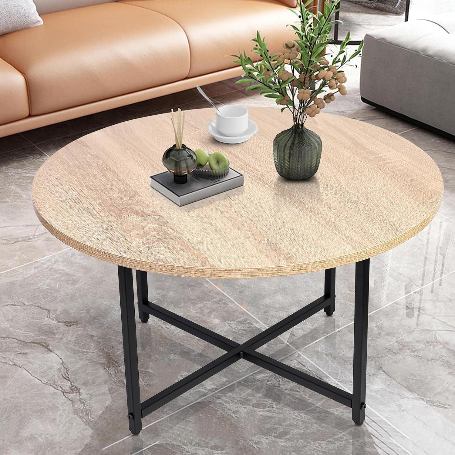 Sunlight slides across the tabletop and brings the wood grain into focus; when you set a mug down the finish feels smooth and faintly textured under your palm. At roughly two feet across,the round top reads compact but considerable,its rounded edge catching your hand without fuss. The metal frame lifts the surface just enough to keep it visually light, so the table settles into the room rather than dominates it. EMUQUD Round coffee table—the 23.6″ wood circle model—has a quietly familiar presence that changes how your living area breathes.