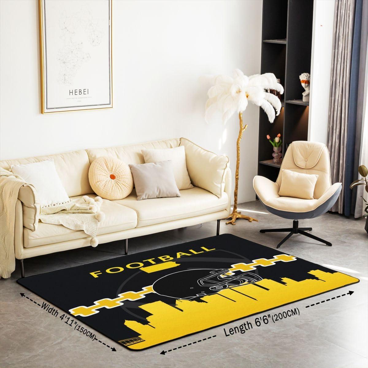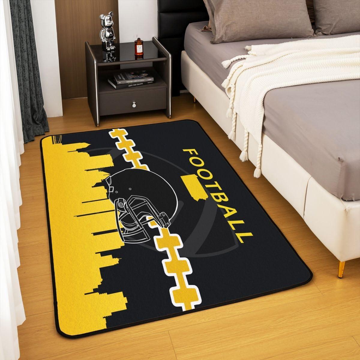 over time you notice how a rug shifts from something new into background habit,softening footsteps and marking the paths where people move. Even after months the Erosebridal Football Lovers Area Rug, 5×7, Sports Living Room Carpet, Non Shedding, Accent Rug Set for Bedroom Decor, settles into corners under the coffee table or beside the bed, its pile flattening a little in high-traffic lanes and holding up in quieter spots. In daily routines it becomes a touchpoint—mornings when you pad through, evenings when the room is used for a show or homework, the small scuffs and the way the edges tuck under furniture feel familiar rather than notable. You notice these rhythms more than any one detail, and in regular household rhythms it becomes part of the room.