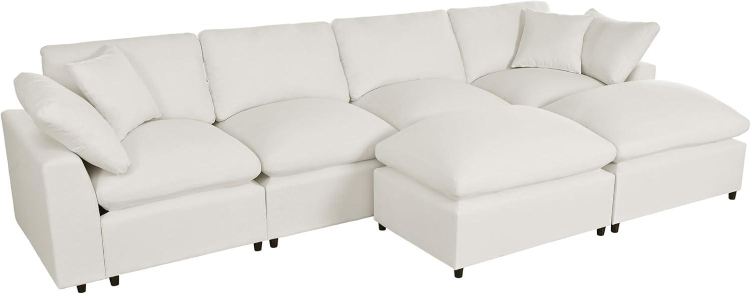 After spending considerable time with this spacious and modular sectional, we appreciate how it caters to those looking for both style and functionality in their living area. The ability to customize the arrangement with six versatile modules means it effortlessly fits into a variety of room layouts and lifestyles.Whether you want a large U-shaped set perfect for family movie nights or a cozy L-shaped corner to maximize space,this piece adapts with ease. The plush seat cushions combined with soft polyester upholstery create an inviting atmosphere that encourages relaxation, while the sturdy plywood frame ensures durability and consistent support for everyday use.