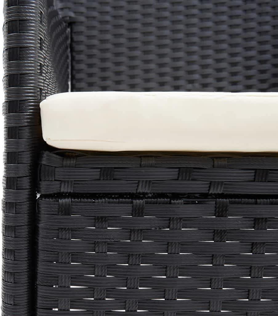 | elegant black poly rattan design fits modern and classic aesthetics alike | The cushions,while comfortable,could benefit from a water-resistant upgrade |