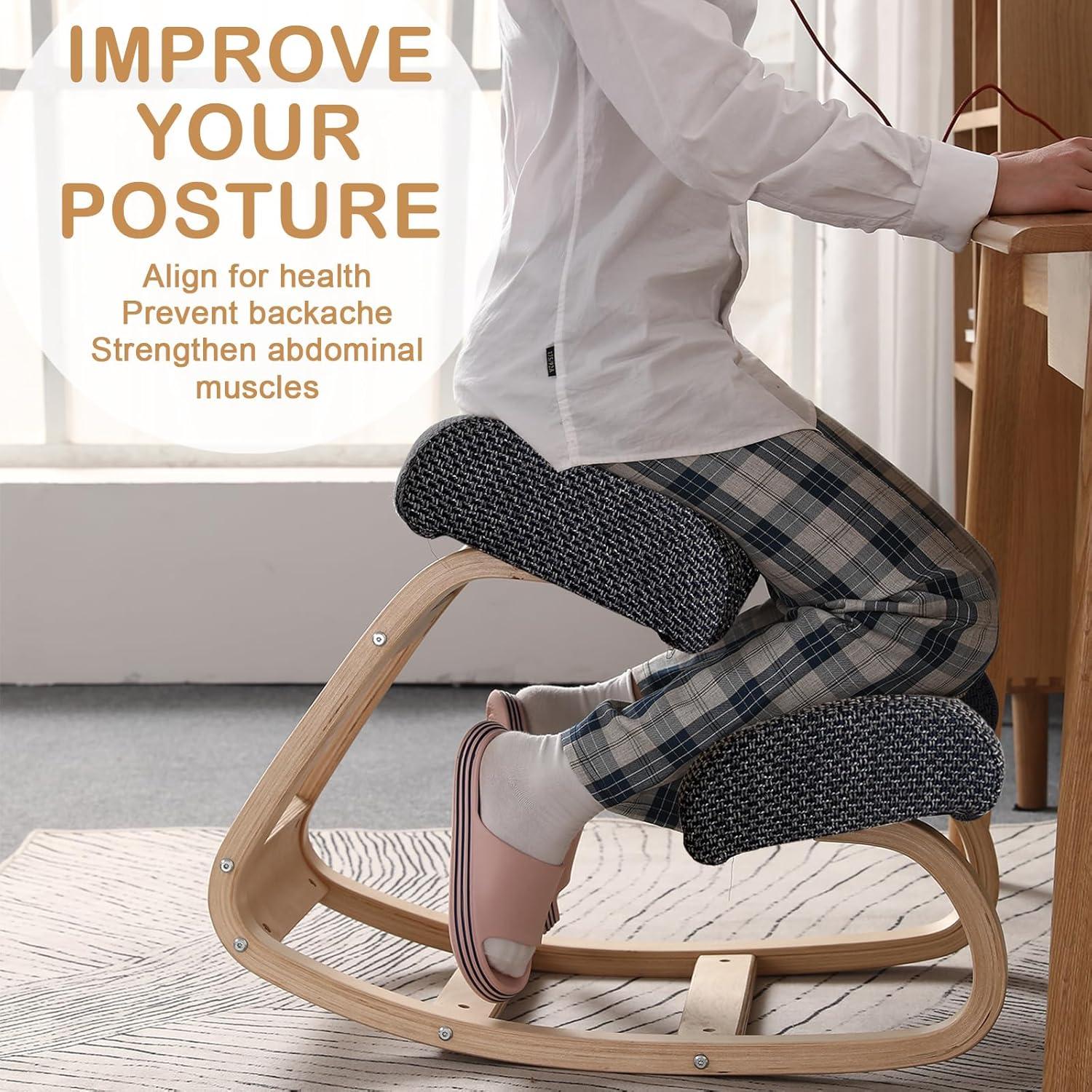 Switching to this kneeling chair has visibly transformed our posture throughout the workday. The unique angled design encourages an open hip angle, which naturally aligns the spine and reduces the tendency to slouch. Unlike traditional chairs that can cause us to sink or hunch, the solid wood frame combined with the high-resilience foam cushions provides firm yet comfortable support that keeps us engaged and upright. We noticed less back and neck tension by the afternoon, which speaks volumes about its ergonomic benefits. The gentle rocking motion has also helped to keep our core activated, making it easier to maintain focus without feeling stiff.