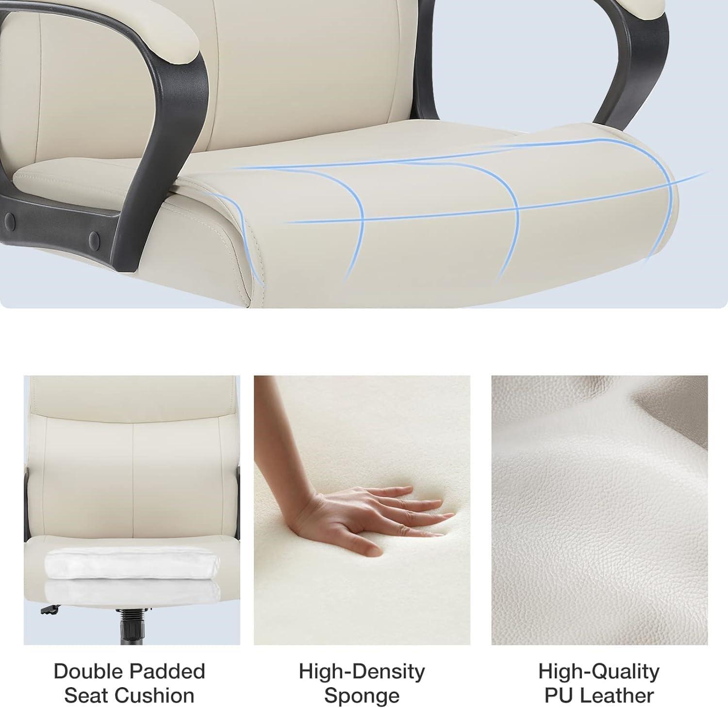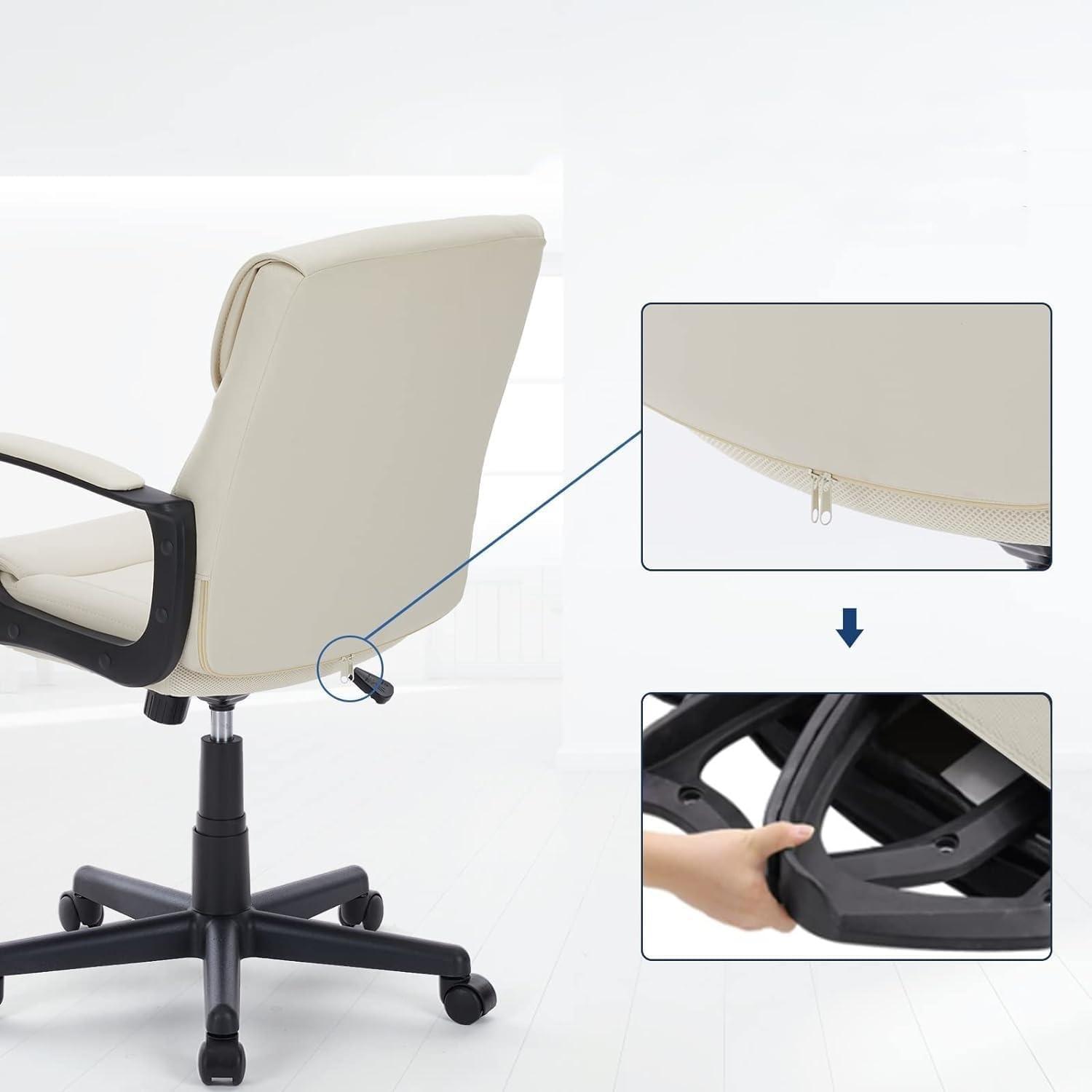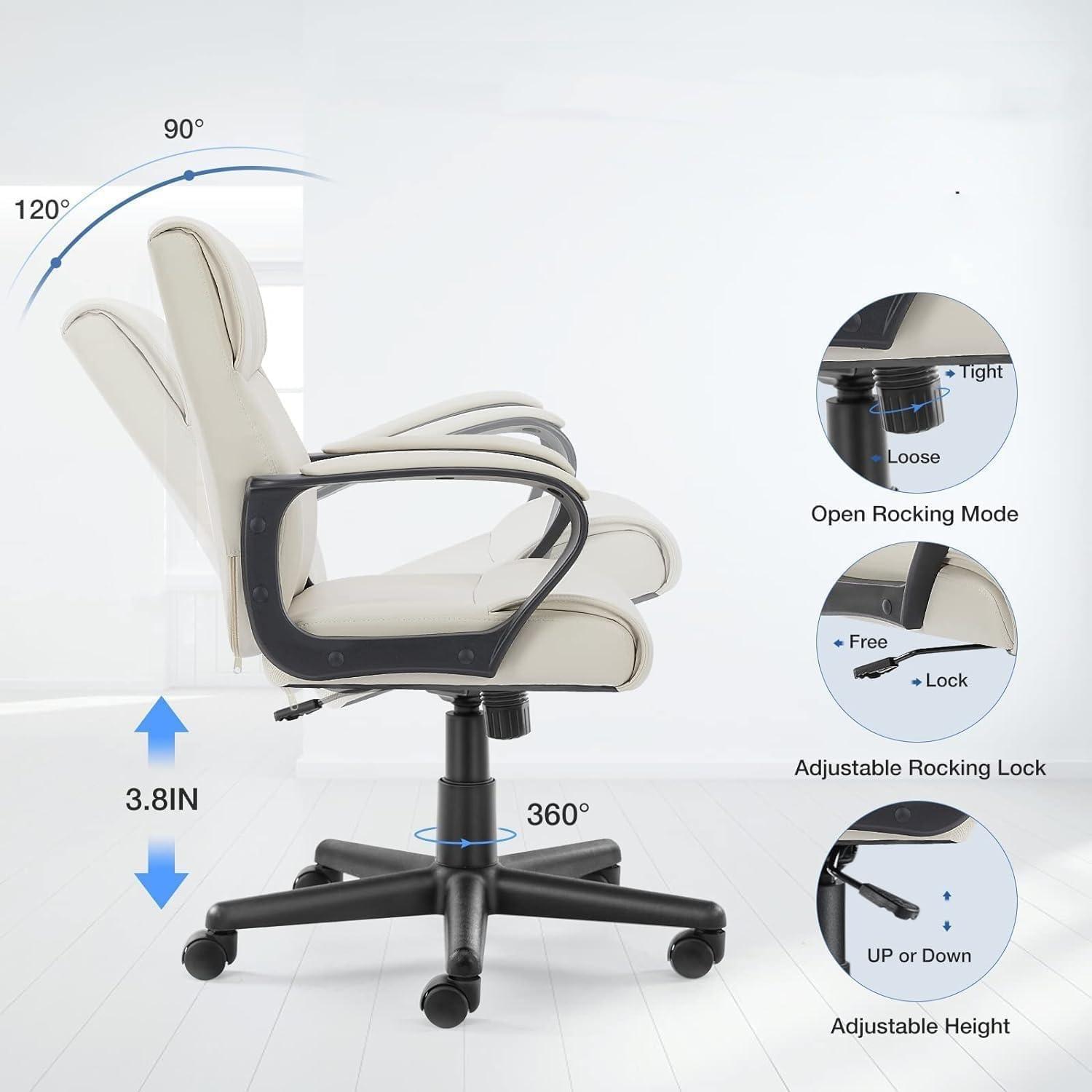 from the moment we unboxed this chair, it was clear that design and functionality were top priorities. The white PU leather finish offers a sleek, modern aesthetic that fits perfectly into any home office setup. The mid-back design provides solid lumbar support wrapped in a waterfall-shaped backrest, which significantly eases pressure during long periods of sitting. What stood out instantly was the chair’s adjustability – the backrest height can be finely tuned between 18.3″ and 22.1″, and the reclining mechanism allows for a agreeable tilt between 90° and 120°, with options to lock or swing. This versatility means it caters well to different comfort preferences, whether working on serious tasks or taking a moment to relax.