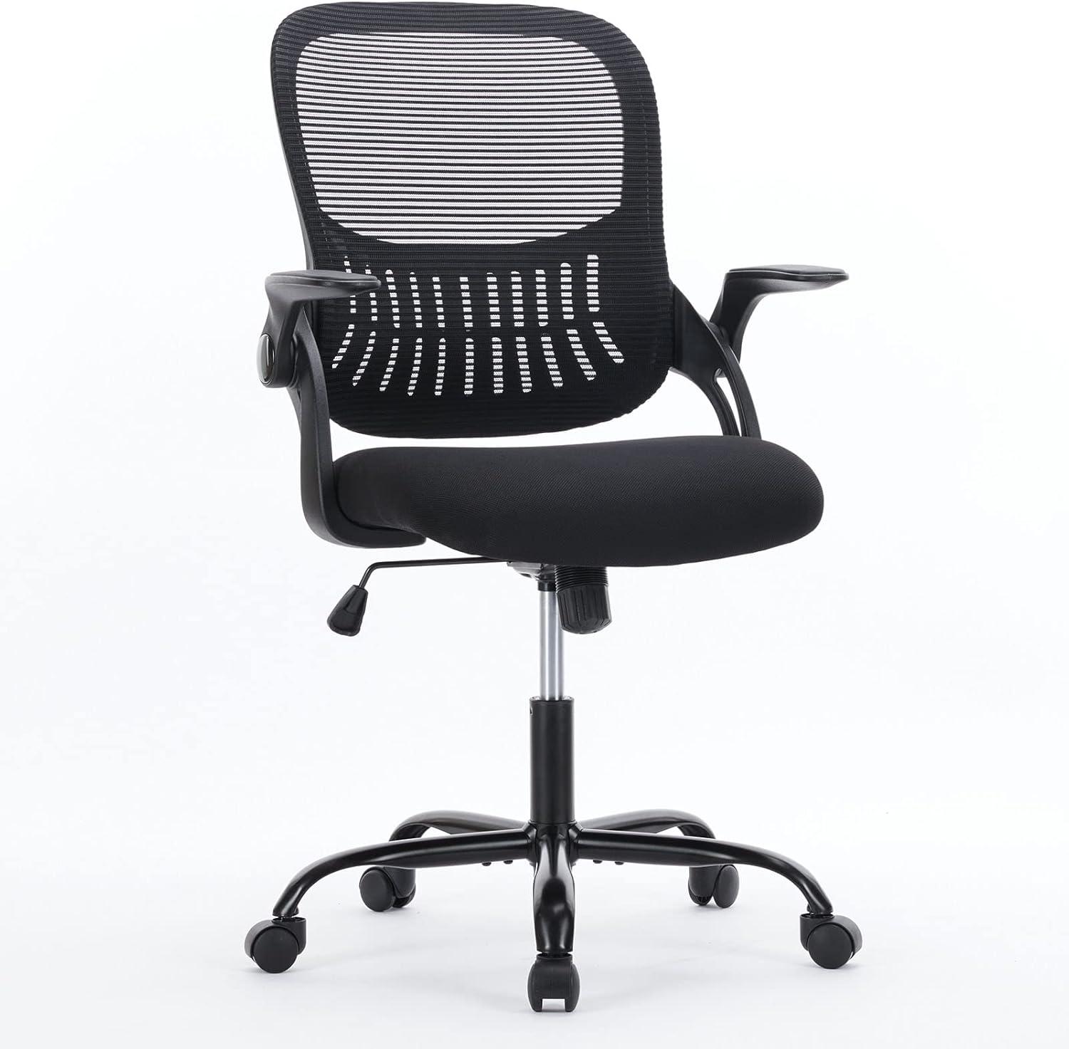 BestOffice | Ergonomic Office Chair | Mid-Back Swivel Desk Chair | Breathable Backrest & Lumbar Support | Adjustable Height | Sponge Seat | Rolling Wheels | Dark Black | for Adults & Women