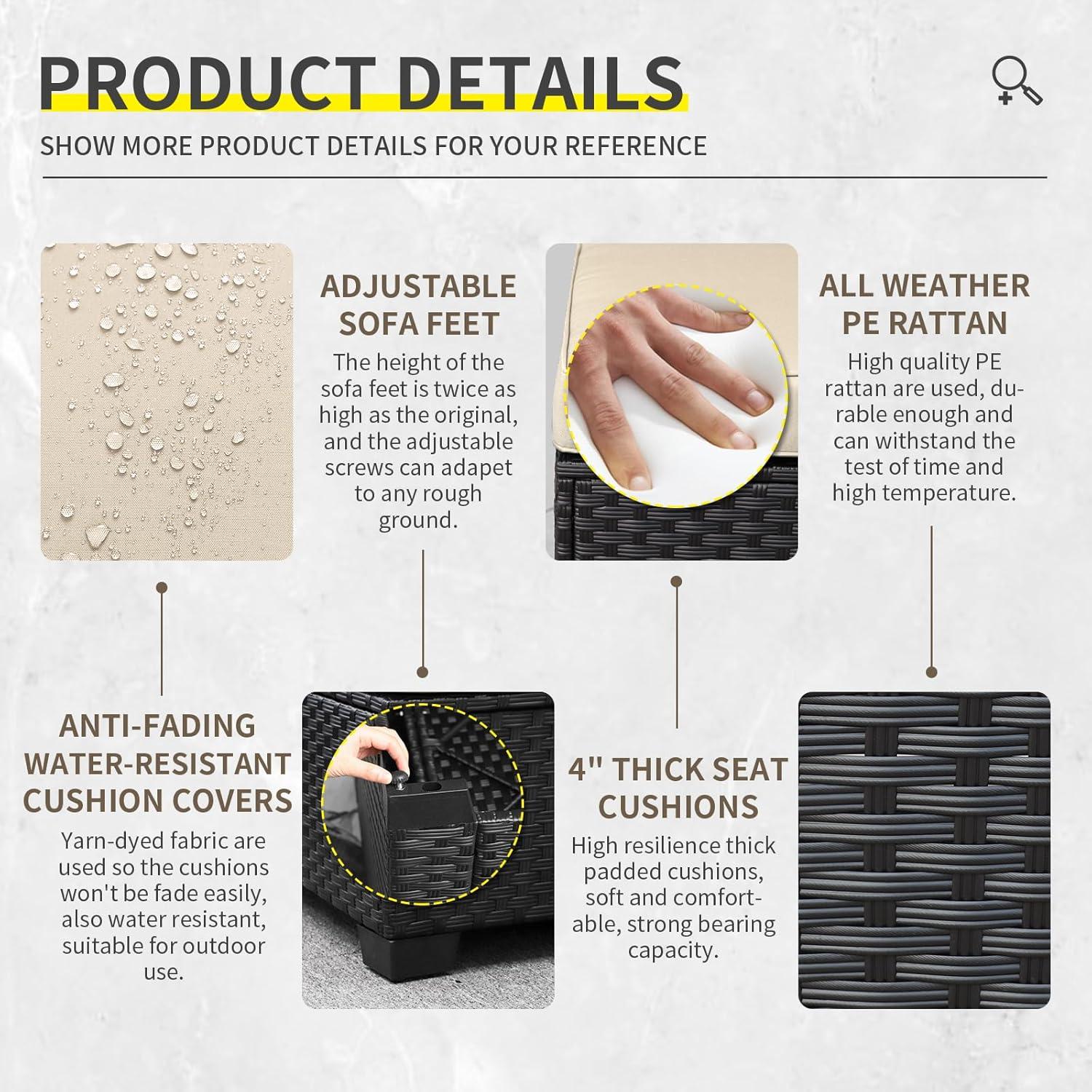 When placing this set alongside other patio furniture we’ve reviewed,its modular design consistently stands out. Unlike many fixed sectional sofas, each piece here is independent, allowing us to customize the layout to fit diverse spaces and styles effortlessly. The thoughtful inclusion of anti-slip granules beneath the cushions is a subtle yet effective upgrade-keeping cushions firmly in place during use, which isn’t always guaranteed in similar wicker sets. Additionally, the sofa feet being twice as high as typical models improved accessibility and reduced issues often caused by uneven ground. These details, combined with the sturdy powder-coated steel frame wrapped in all-weather PE rattan, strike a balance between style and long-term durability that we found noticeably superior to many competitors.